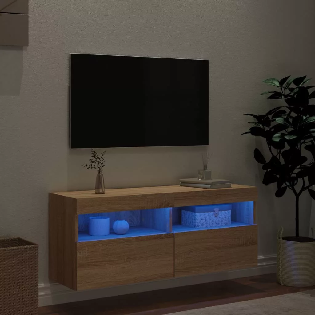 - RGB LED-világítás: A falra szerelhető média-szekrény élénk RGB LED-világítással lett felszerelve. A sokféle testre szabható menü segítségével egyszerűen megváltoztathatja a világítás színét, sőt, automatikus váltakozást is beállíthat. Ezek a LED-lámpák nemcsak a lebegő TV-egység modern megjelenését, de divatosságát is növelik.