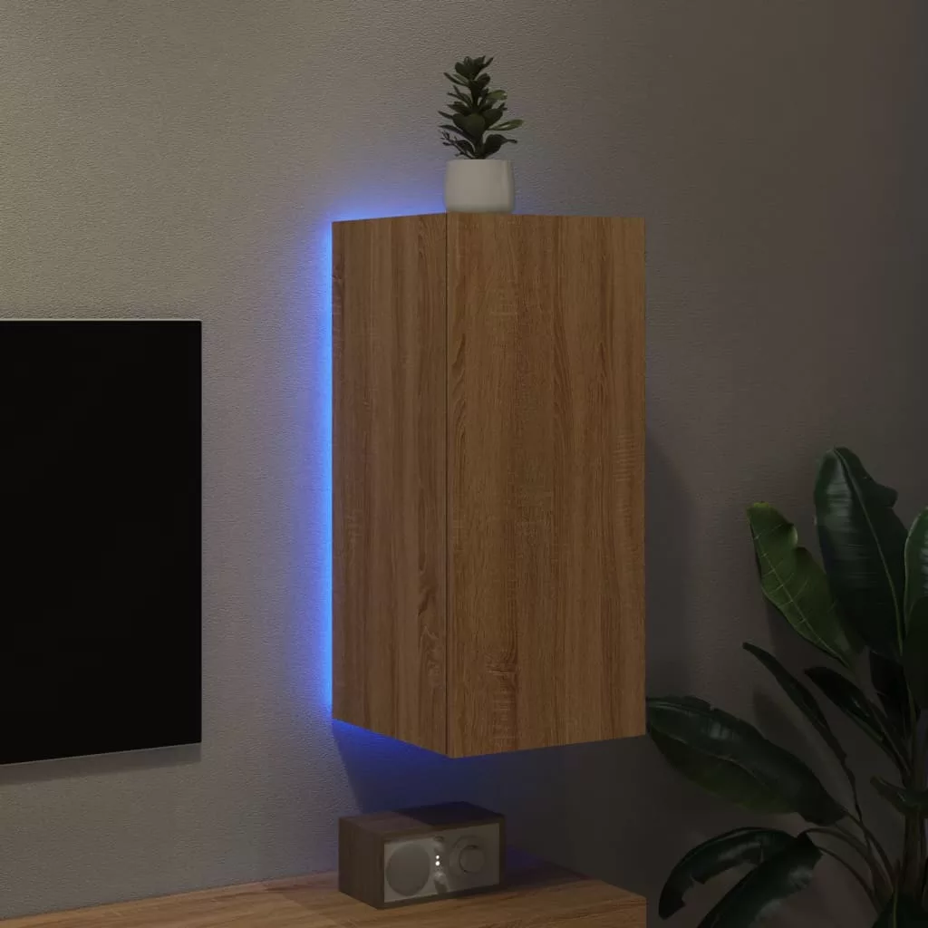- RGB LED-világítás: A falra szerelhető média-szekrény élénk RGB LED-világítással lett felszerelve. A sokféle testre szabható menü segítségével egyszerűen megváltoztathatja a világítás színét, sőt, automatikus váltakozást is beállíthat. Ezek a LED-lámpák nemcsak a lebegő TV-egység modern megjelenését, de divatosságát is növelik.