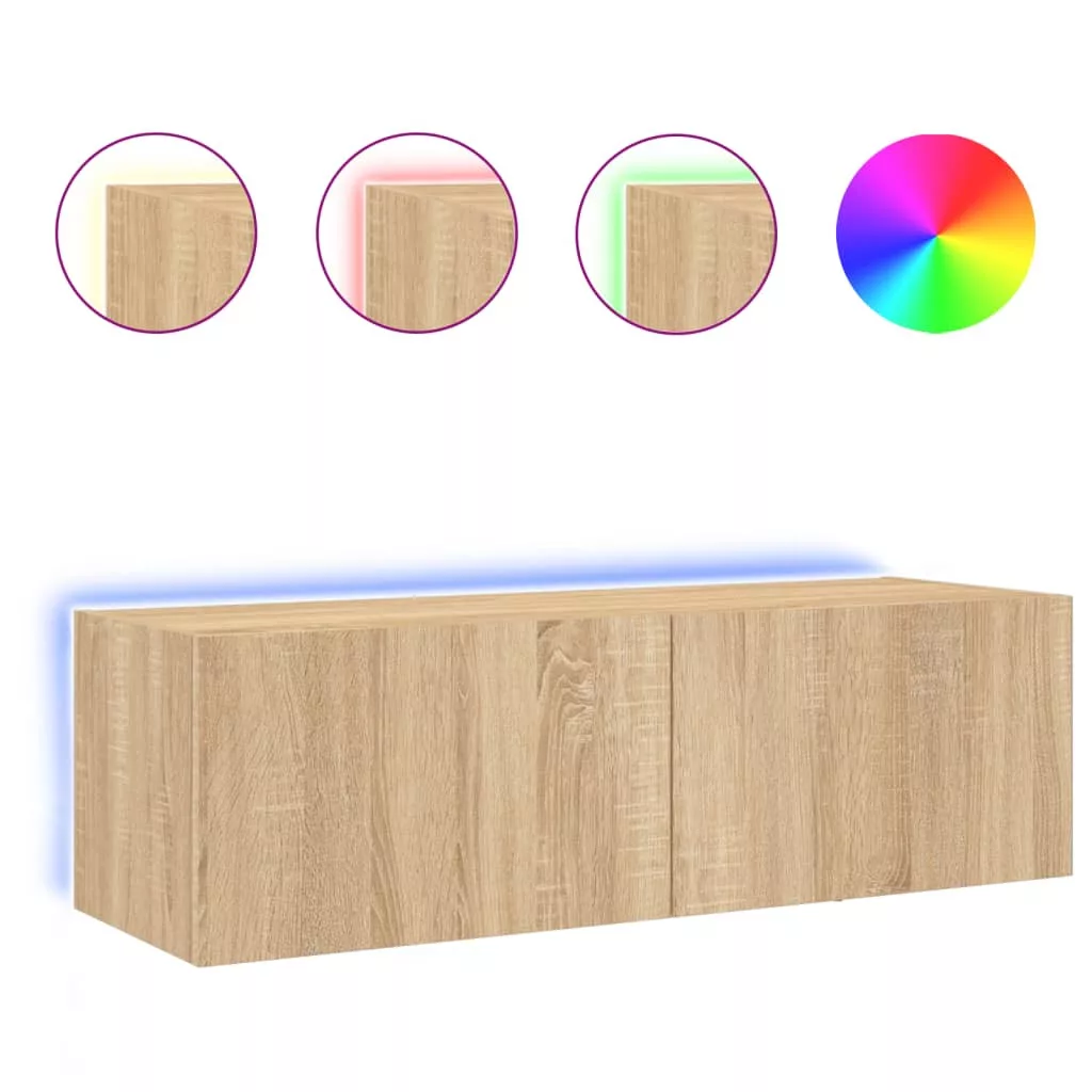 - RGB LED-világítás: A falra szerelhető média-szekrény élénk RGB LED-világítással lett felszerelve. A sokféle testre szabható menü segítségével egyszerűen megváltoztathatja a világítás színét, sőt, automatikus váltakozást is beállíthat. Ezek a LED-lámpák nemcsak a lebegő TV-egység modern megjelenését, de divatosságát is növelik.