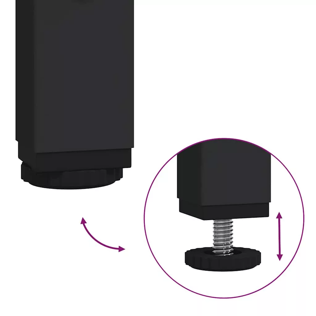 - Állítható lábak: A műanyag párnákkal ellátott állítható lábak egyensúlyban tartják az asztalt egyenetlen talajon és növelik a stabilitást.