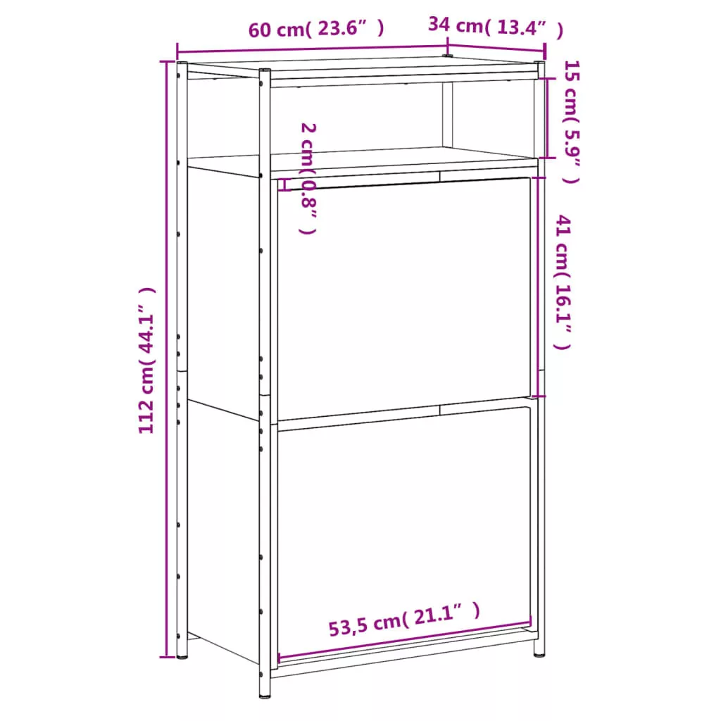 vidaXL barna tölgyszínű szerelt fa cipősszekrény 60x34x112 cm
