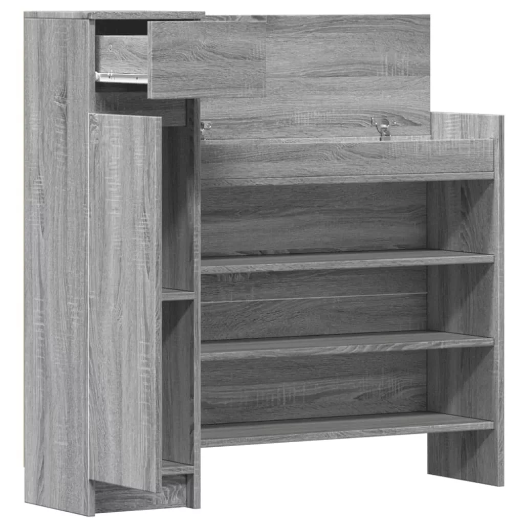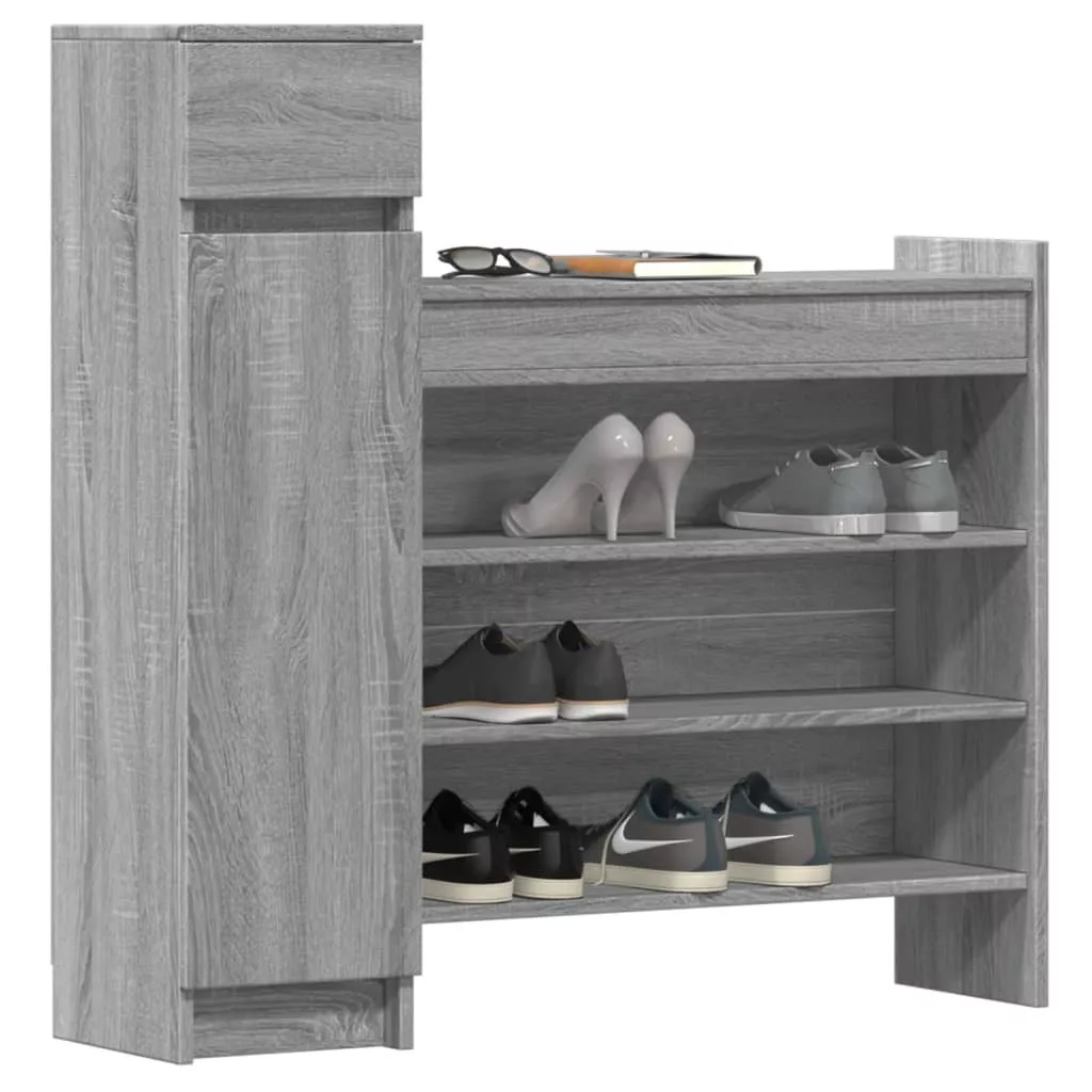 - Bőséges tárolóhely: A cipőszekrény 1 fiókkal, 2 ajtós rekesszel és 4 polccal rendelkezik, amelyek bőséges tárolóhelyet biztosítanak a cipők és egyéb tárgyak rendezett tárolására.