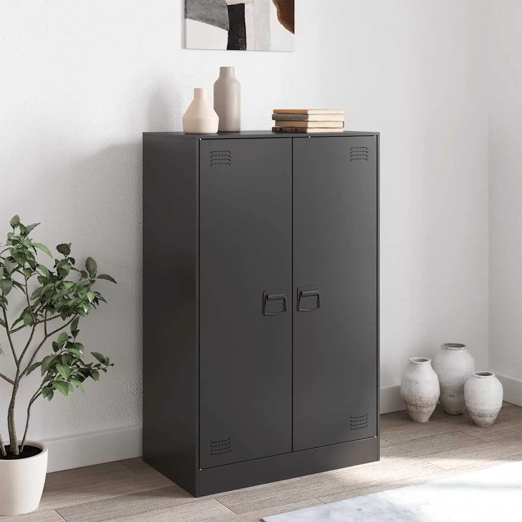 vidaXL fekete acél tálalószekrény 67 x 39 x 107 cm