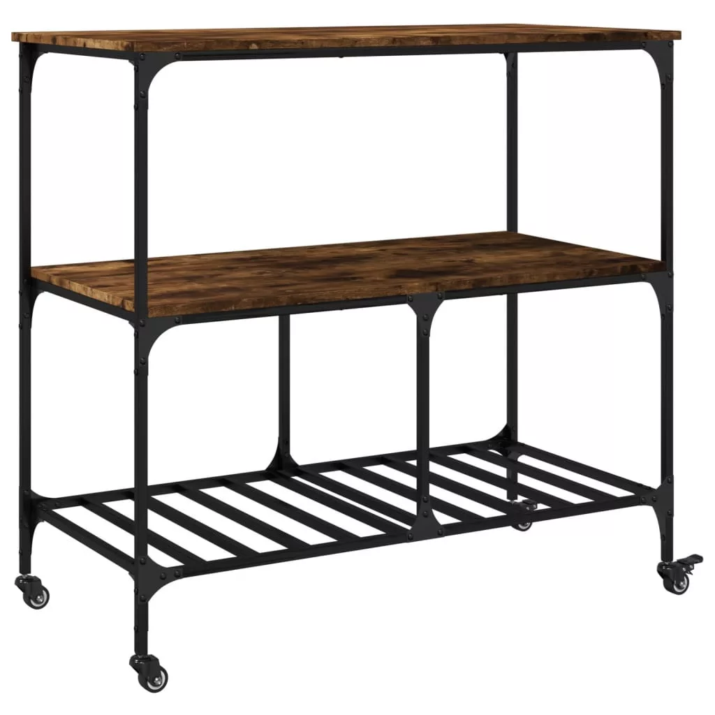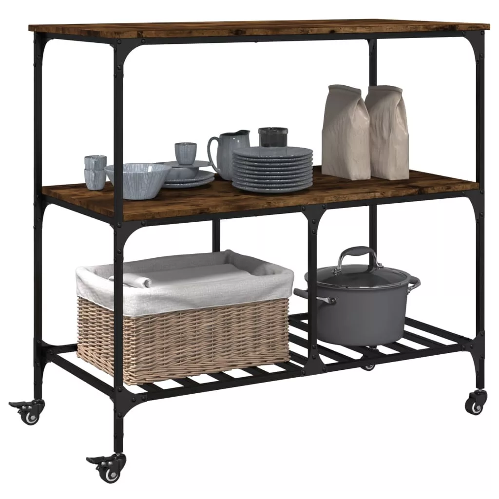 vidaXL füstös tölgy színű szerelt fa zsúrkocsi 100 x 50 x 95 cm