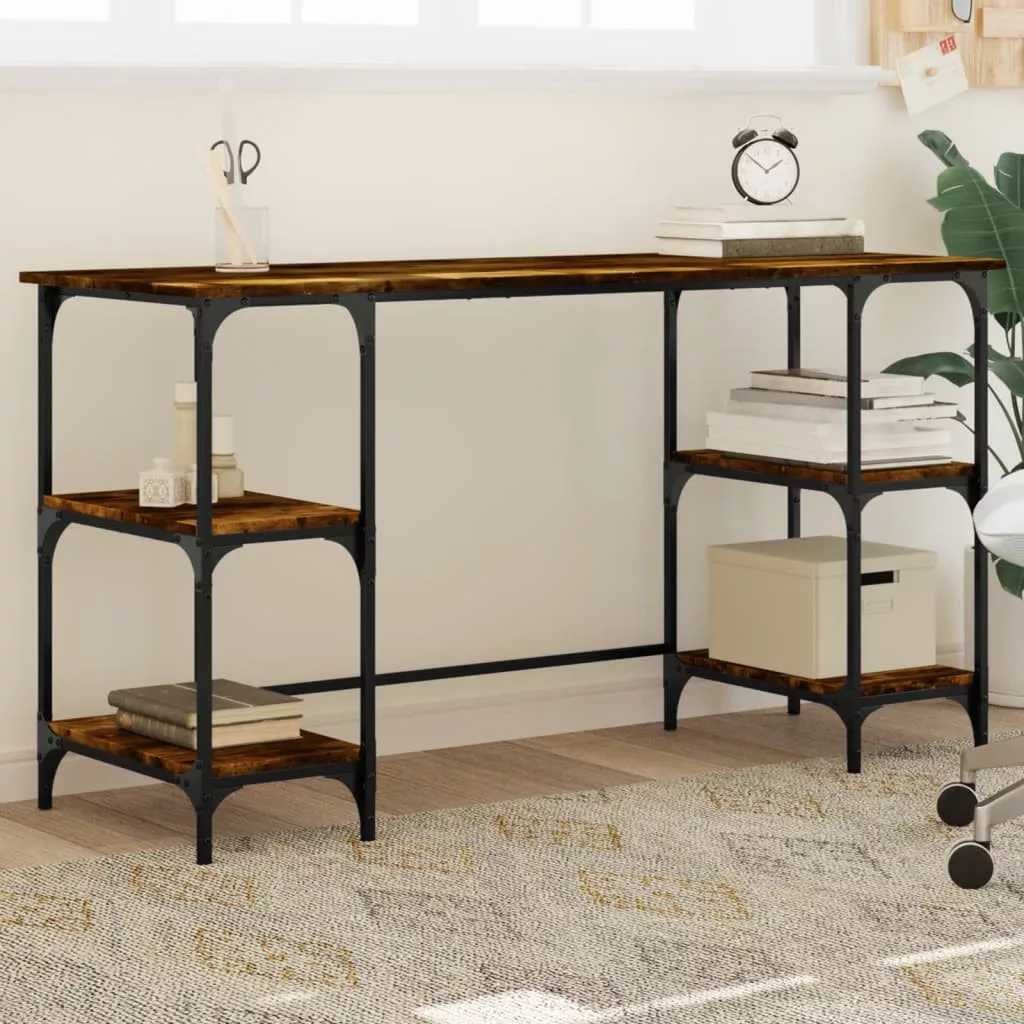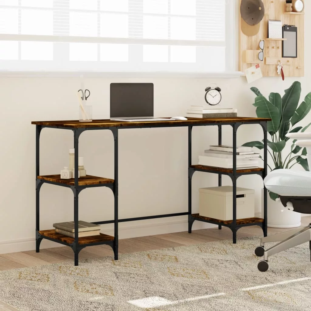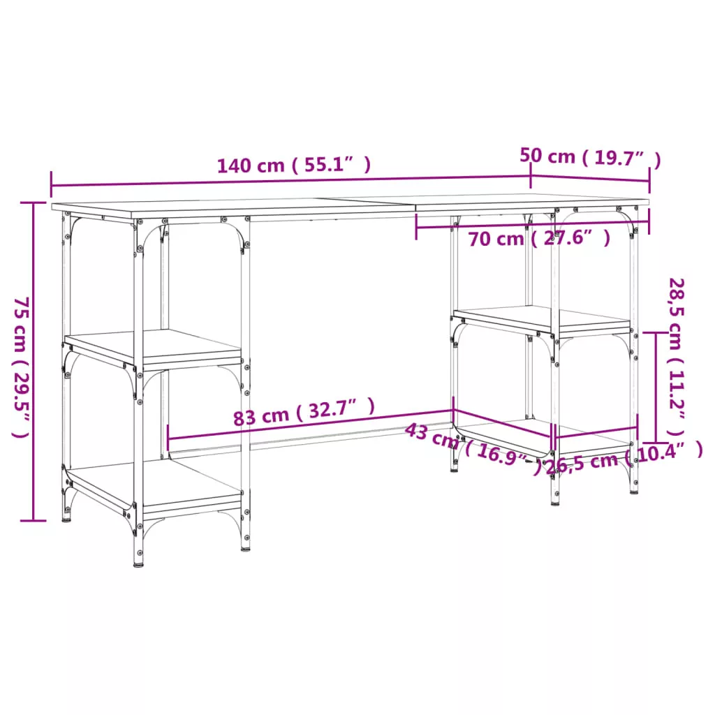 vidaXL füstös tölgy színű fém és szerelt fa íróasztal 140 x 50 x 75 cm