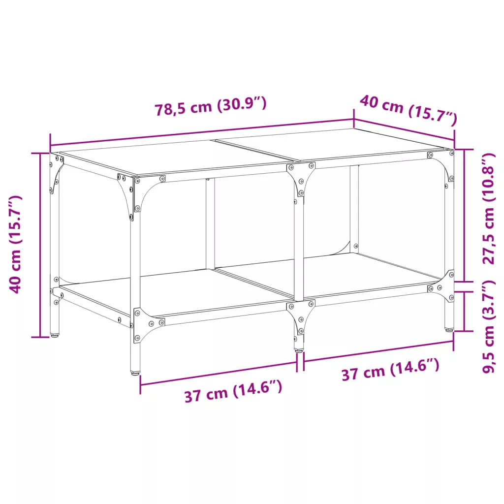 - Üveg felső lap: A kisasztal teteje jól látható és biztonságos felületet biztosít rágcsálnivalók, italok, vázák, gyümölcstálak vagy egyéb dísztárgyak számára.