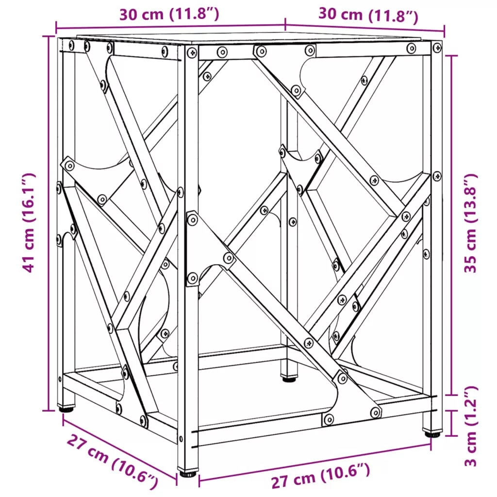 - Üveg felső lap: A kisasztal teteje jól látható és biztonságos felületet biztosít rágcsálnivalók, italok, vázák, gyümölcstálak vagy egyéb dísztárgyak számára.