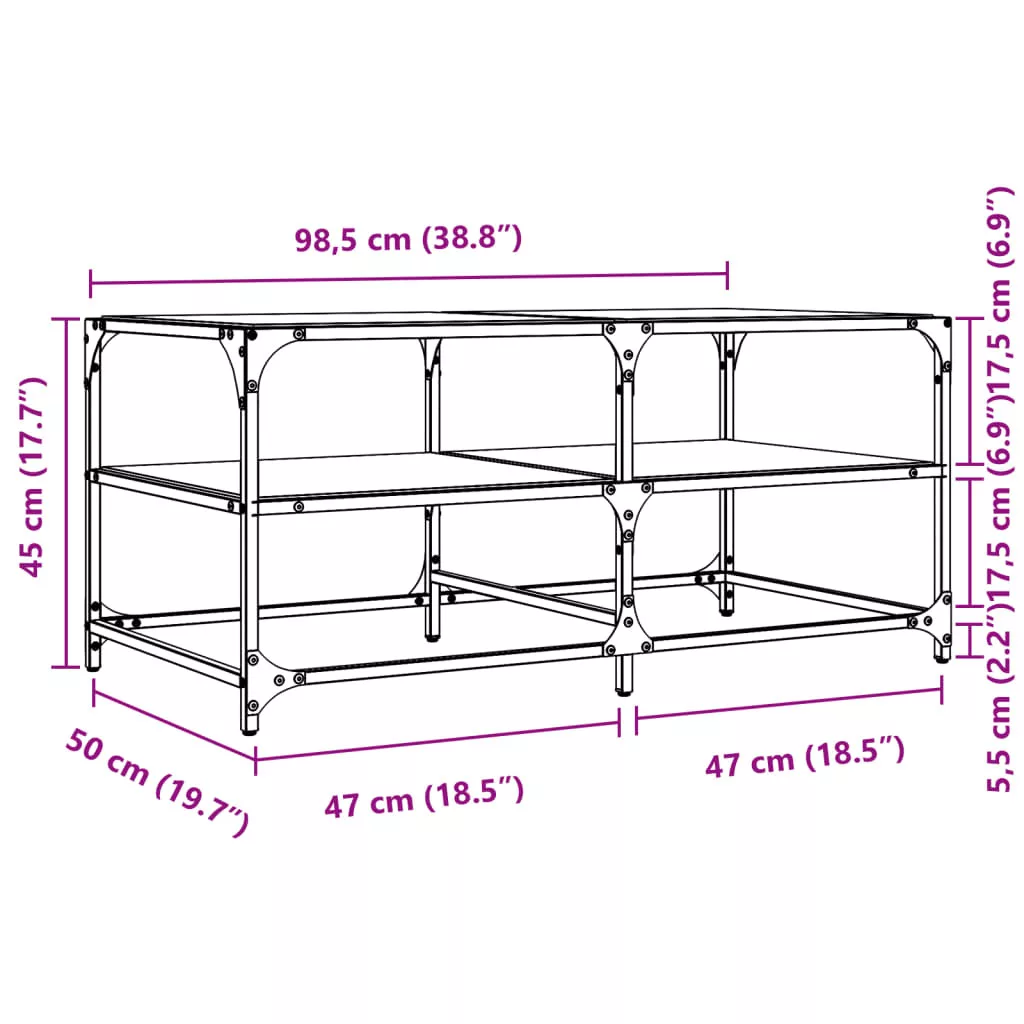 - Üveg felső lap: A kisasztal teteje jól látható és biztonságos felületet biztosít rágcsálnivalók, italok, vázák, gyümölcstálak vagy egyéb dísztárgyak számára.