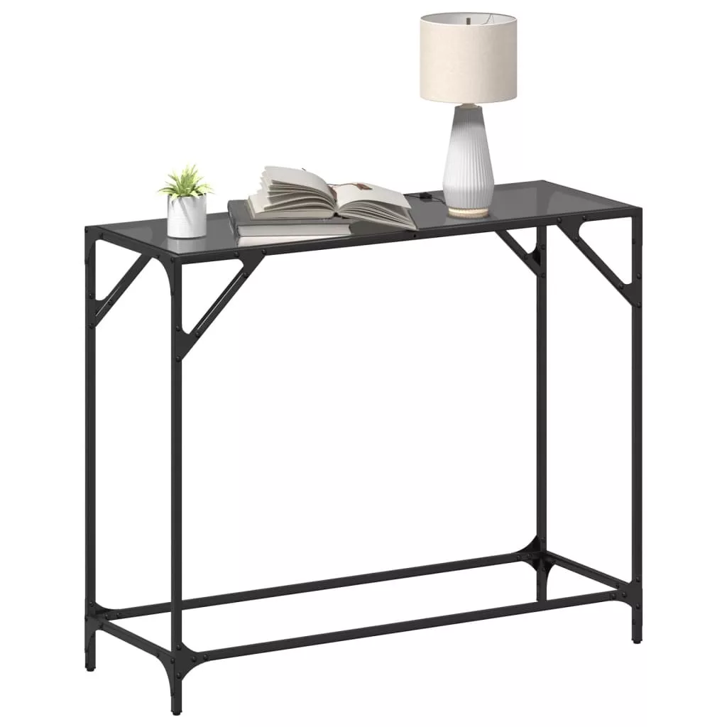 vidaXL acél tálalóasztal fekete üveglappal 98 x 35 x 81 cm