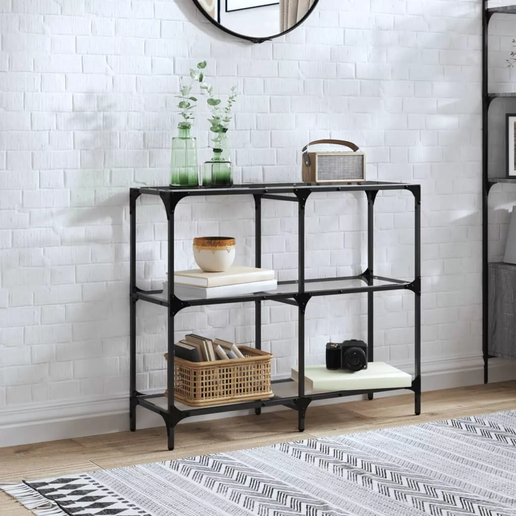vidaXL acél tálalóasztal átlátszó üveglappal 98 x 30 x 81 cm