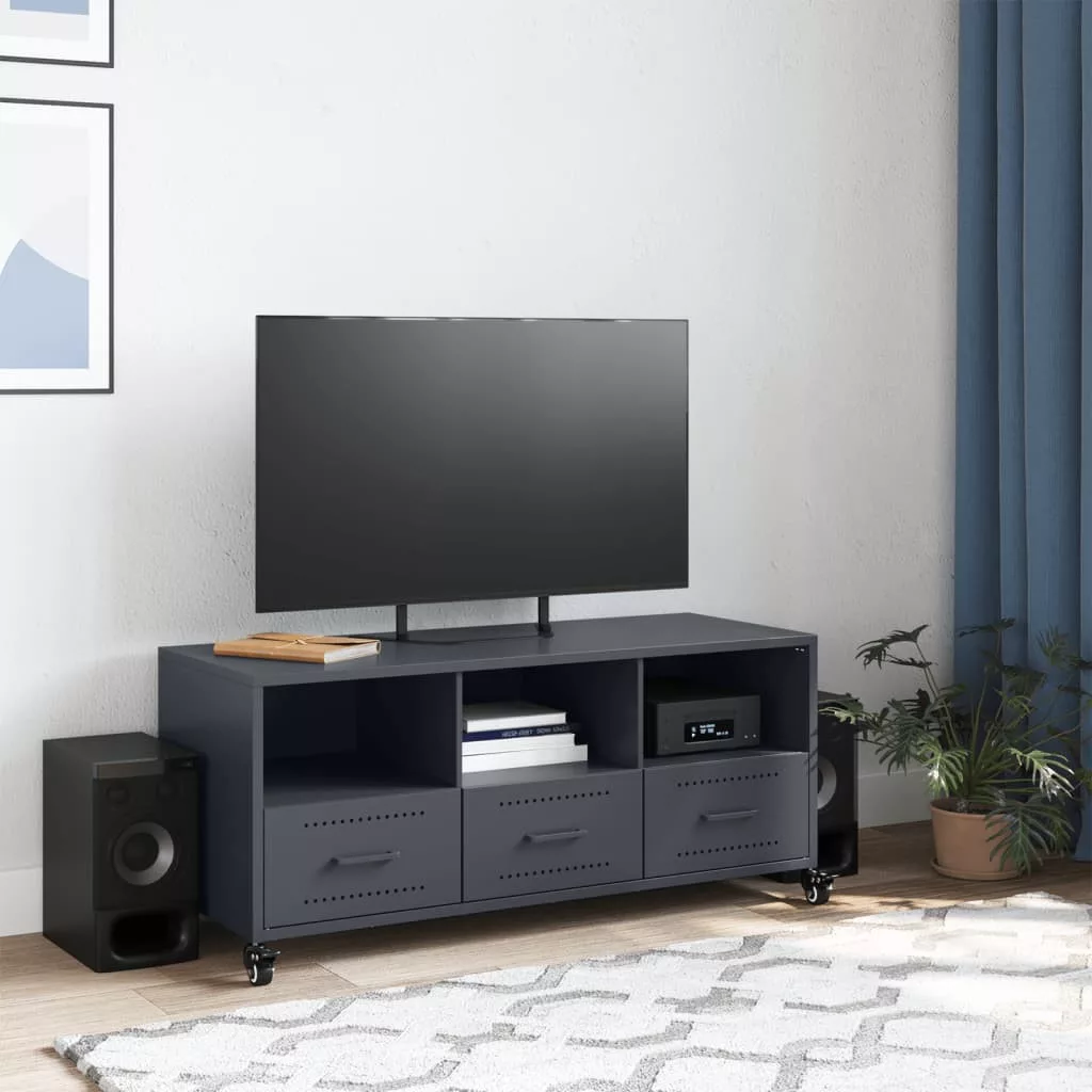 Ez a TV-szekrény egyszerű és praktikus, így tökéletesen illeszkedik a nappaliba.