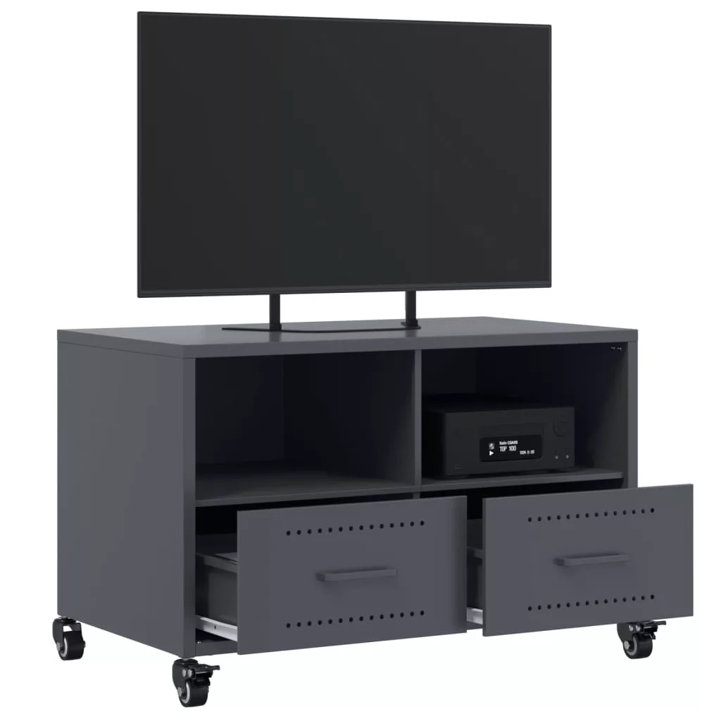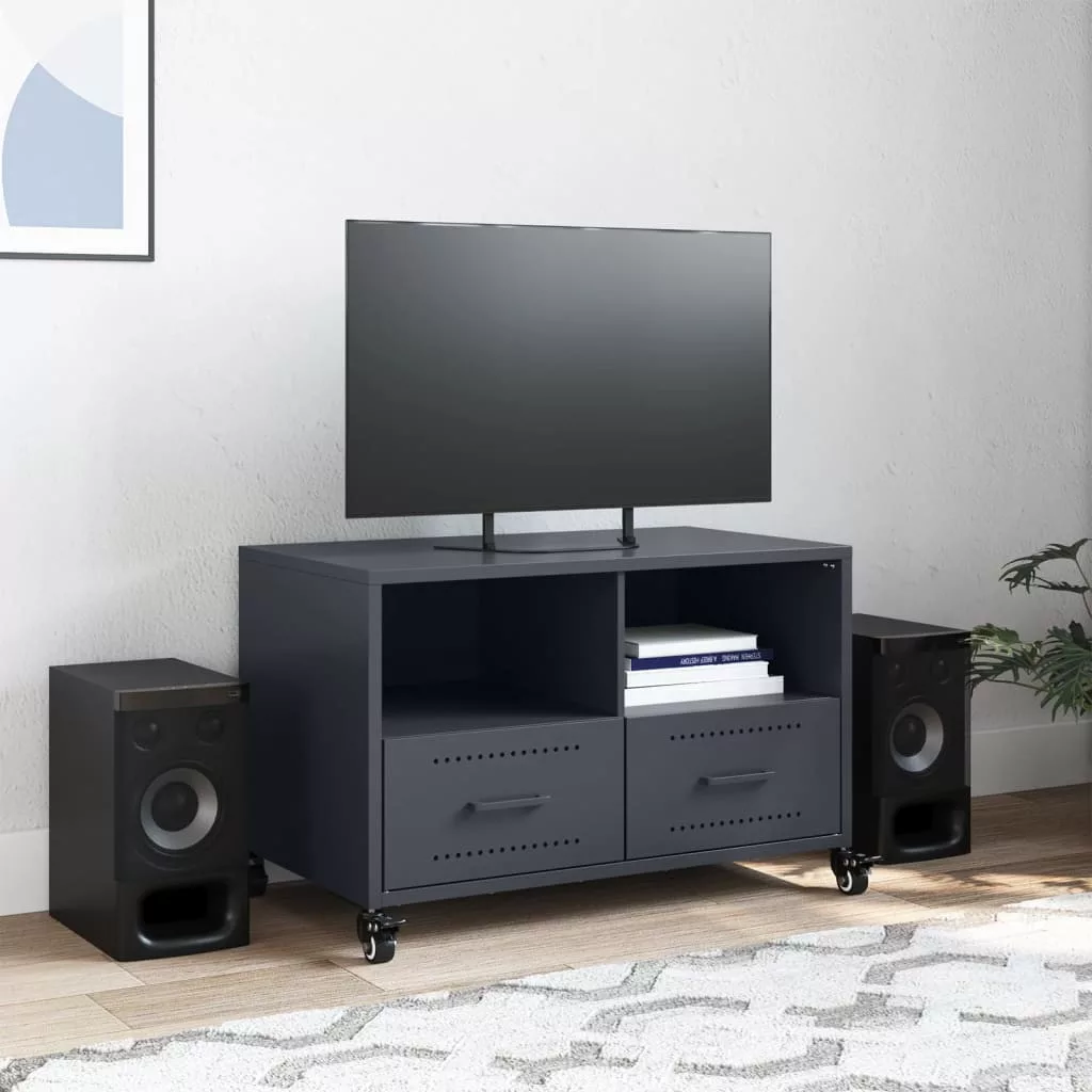 Ez a TV-szekrény egyszerű és praktikus, így tökéletesen illeszkedik a nappaliba.