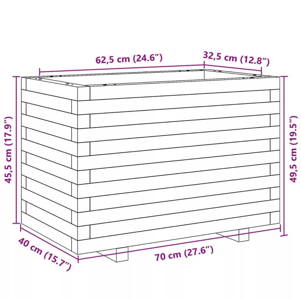 - Anyaga: vákuumos nyomással impregnált fenyőfa