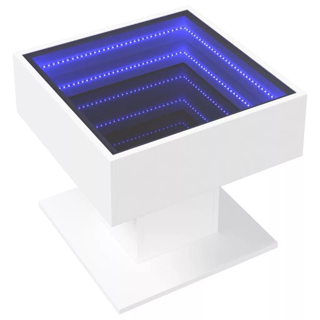 Az egyedi LED-es dohányzóasztal végtelen hatású tükör asztallappal különböző helyekre alkalmas. Ez az asztal nem hiányozhat az otthonából.