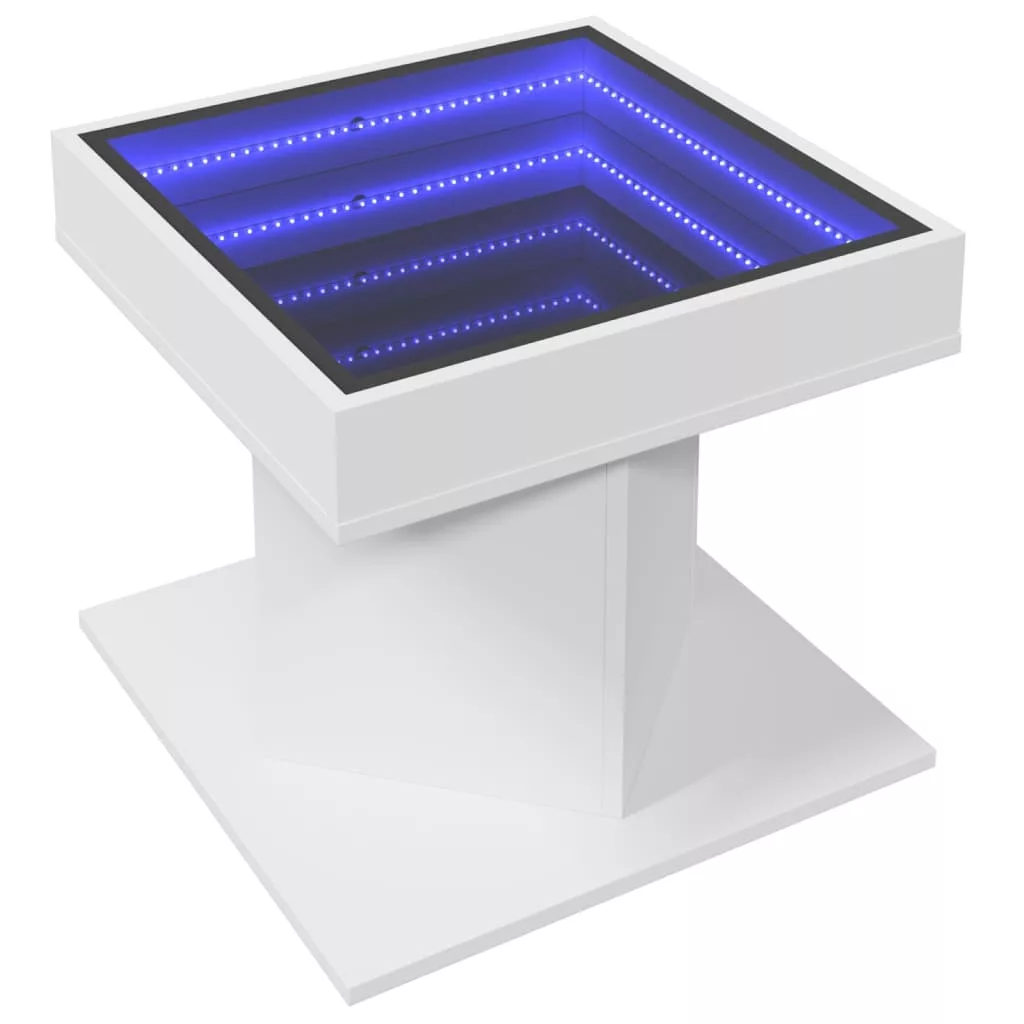 Az egyedi LED-es dohányzóasztal végtelen hatású tükör asztallappal különböző helyekre alkalmas. Ez az asztal nem hiányozhat az otthonából.