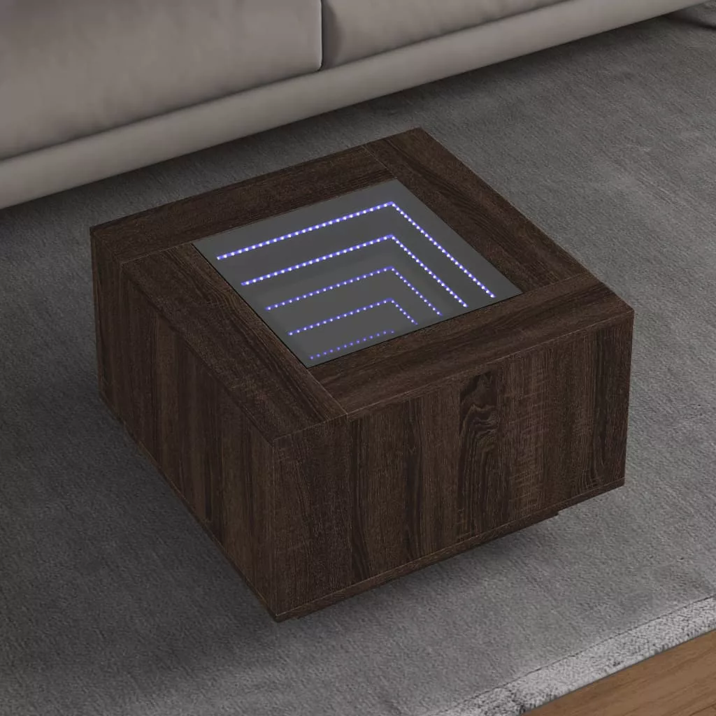 Az egyedi LED-es dohányzóasztal végtelen hatású tükör asztallappal különböző helyekre alkalmas. Ez az asztal nem hiányozhat az otthonából.