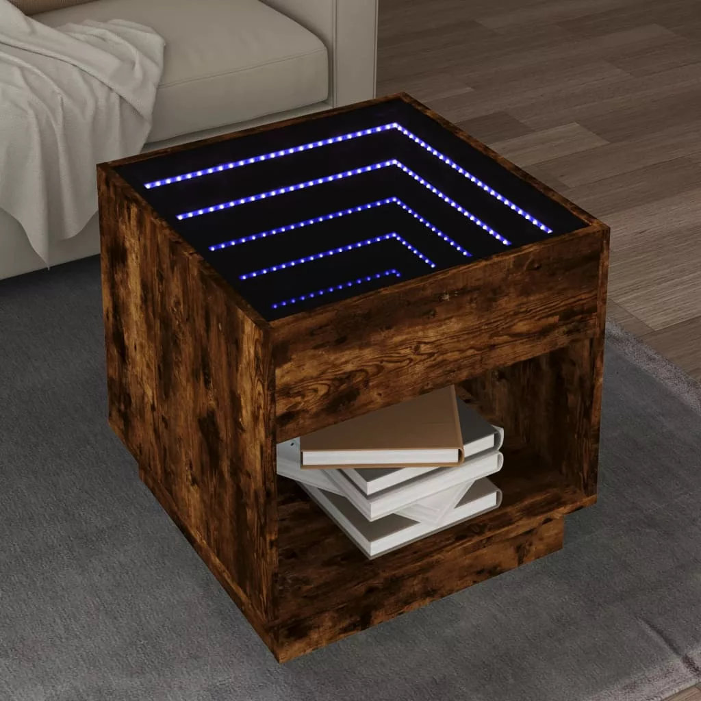 Az egyedi LED-es dohányzóasztal végtelen hatású tükör asztallappal különböző helyekre alkalmas.