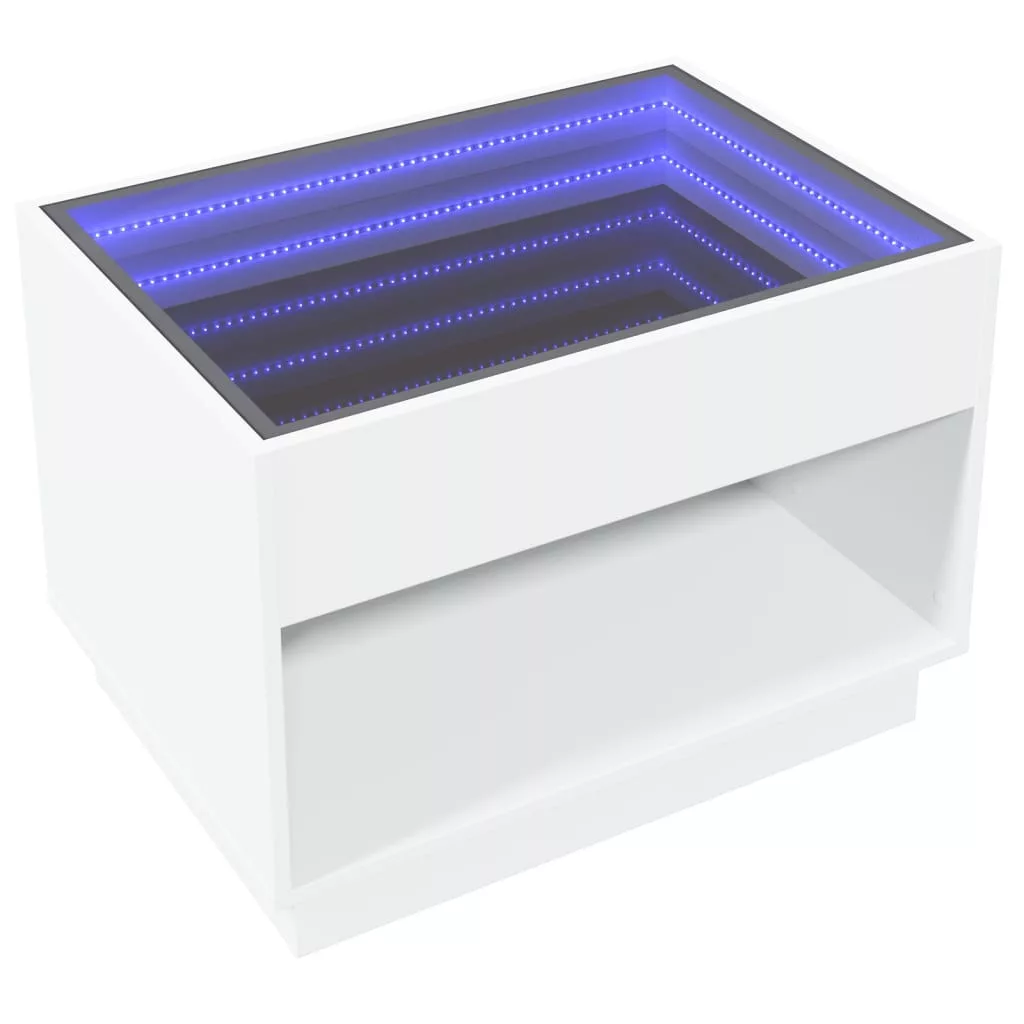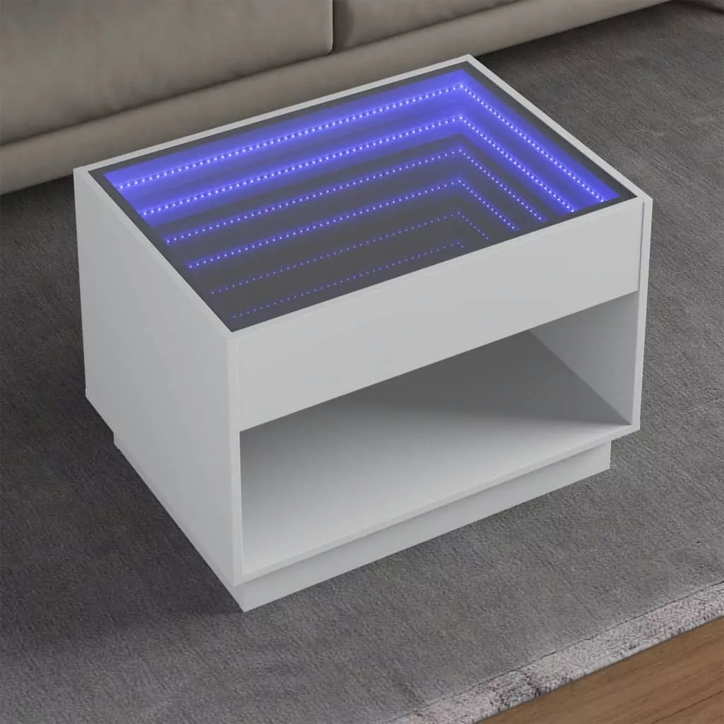 Az egyedi LED-es dohányzóasztal végtelen hatású tükör asztallappal különböző helyekre alkalmas.
