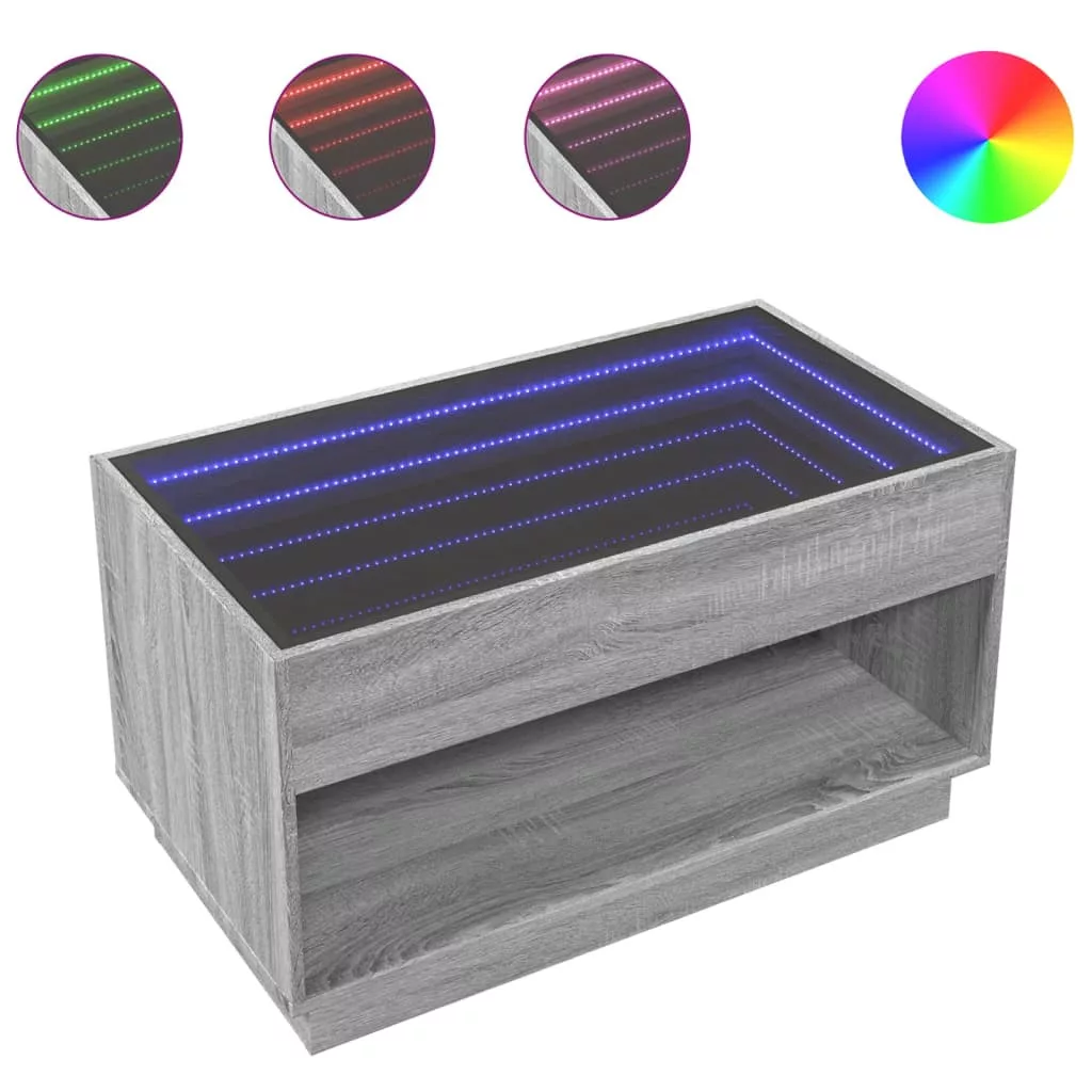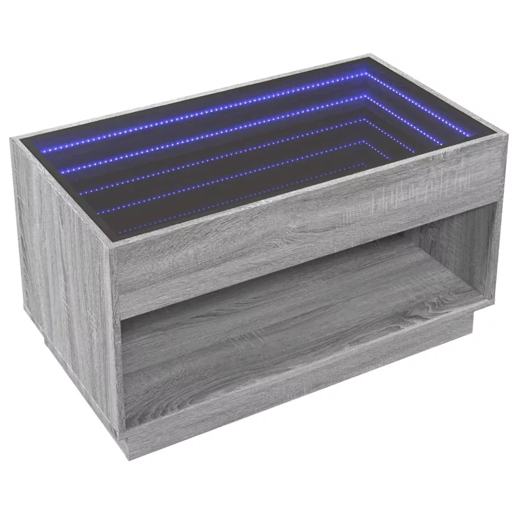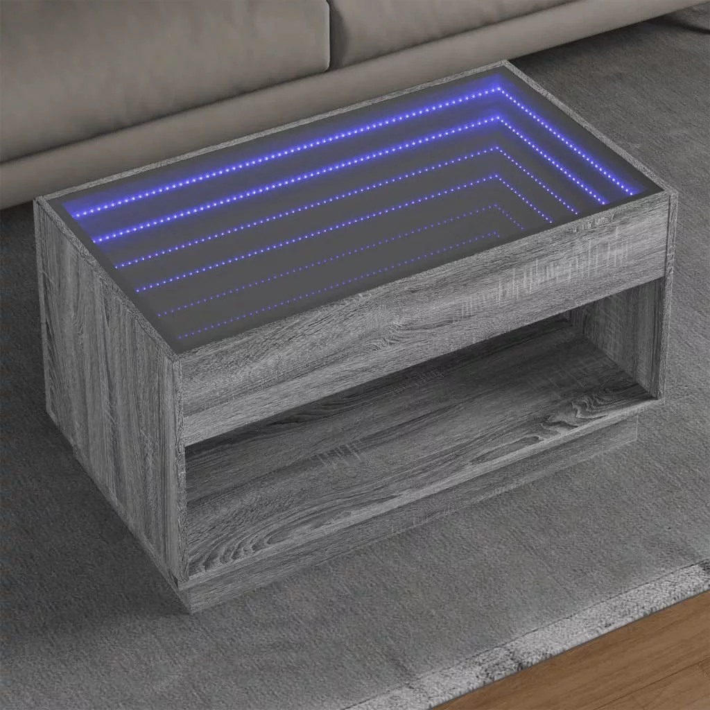 Az egyedi LED-es dohányzóasztal végtelen hatású tükör asztallappal különböző helyekre alkalmas.