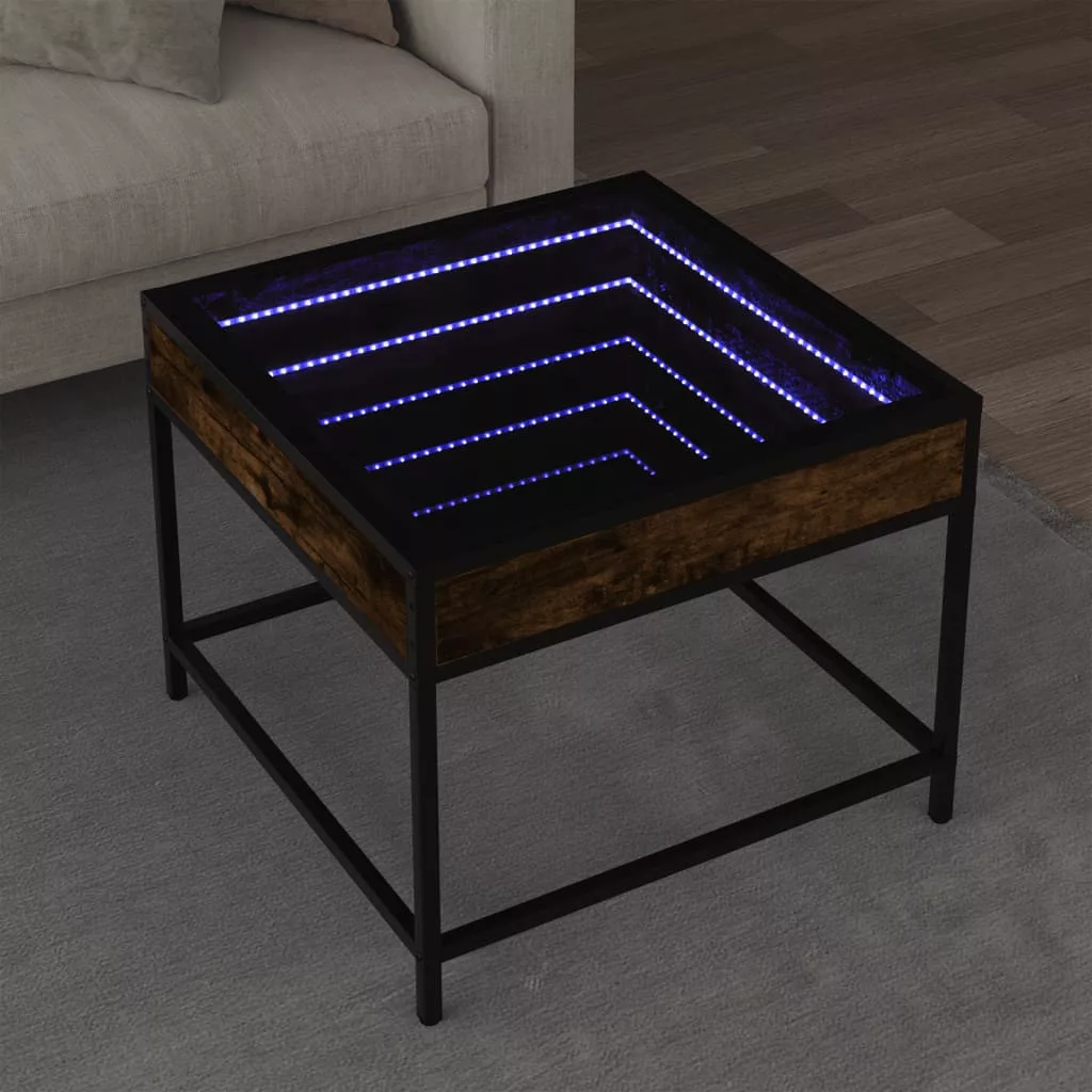Az egyedi LED-es dohányzóasztal végtelen hatású tükör asztallappal különböző helyekre alkalmas.