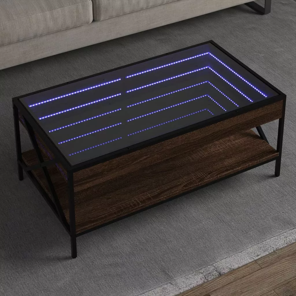 Az egyedi LED-es dohányzóasztal végtelen hatású tükör asztallappal különböző helyekre alkalmas.