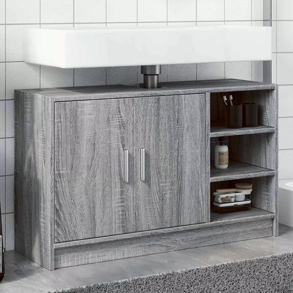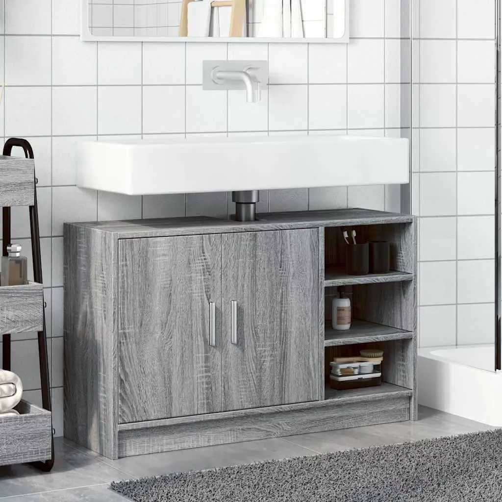 - Bőséges tárolóhely: A mosdószekrény 2 darab 2 ajtós rekesszel és 3 nyitott rekesszel rendelkezik, így bőséges helyet kínál alapvető holmijai kézközelben történő rendezett tárolásához. A szekrény teteje ideális a mosdókagyló elhelyezésére.