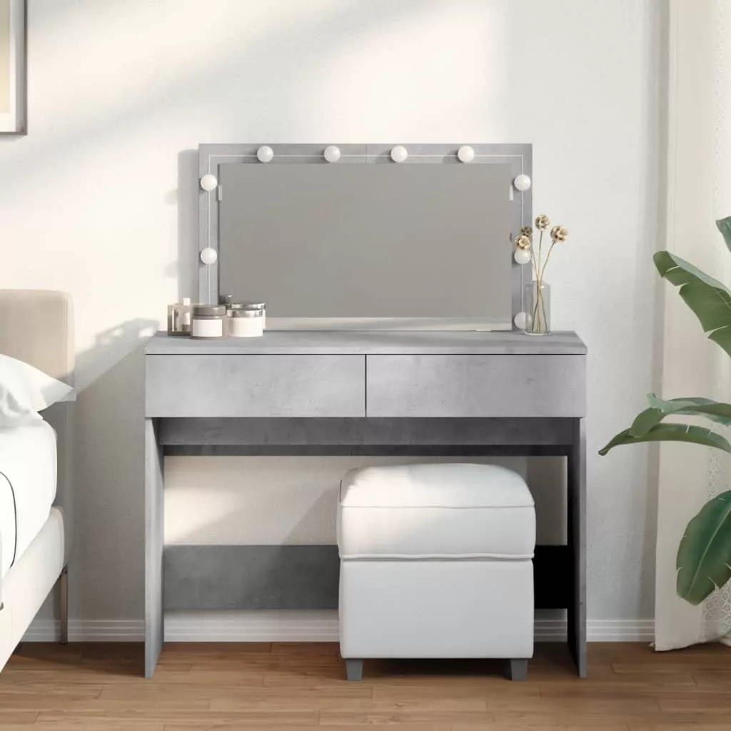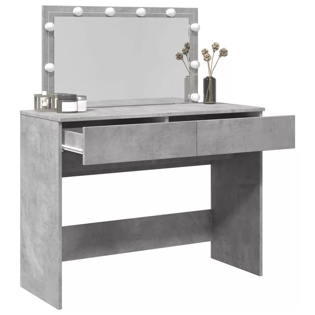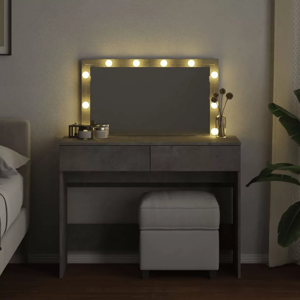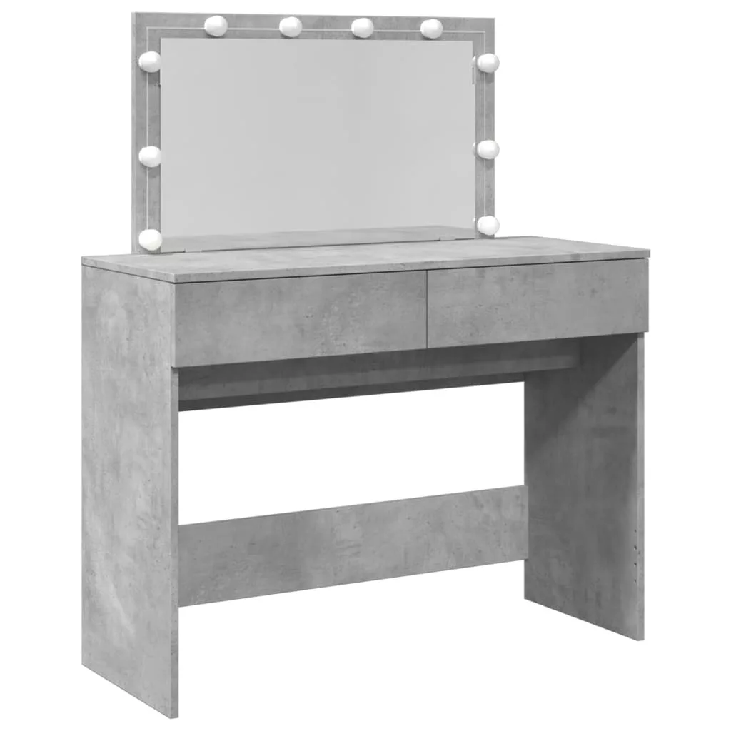 vidaXL betonszürke fésülködőasztal LED-del 100 x 40 x 120 cm
