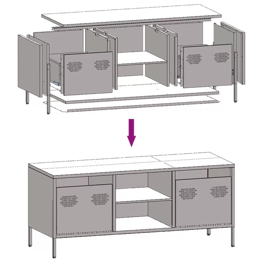 Ez a masszív, ipari stílusú TV-szekrény időtlen kiegészítője lesz nappalijának vagy hálószobájának.