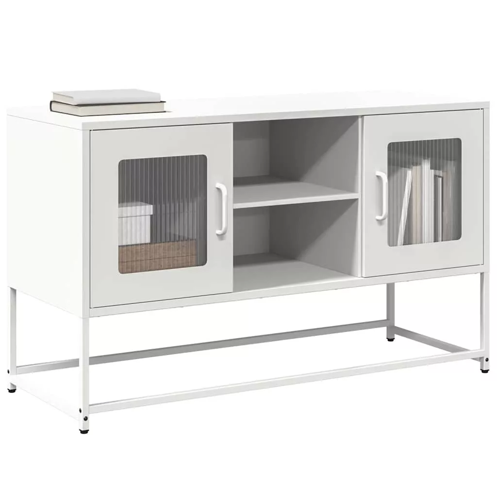 - Fém fogantyúk: Ez a médiaszekrény fém fogantyúkkal lett felszerelve a könnyű hozzáférés érdekében, és stílusos ipari stílust visz a dizájnba.