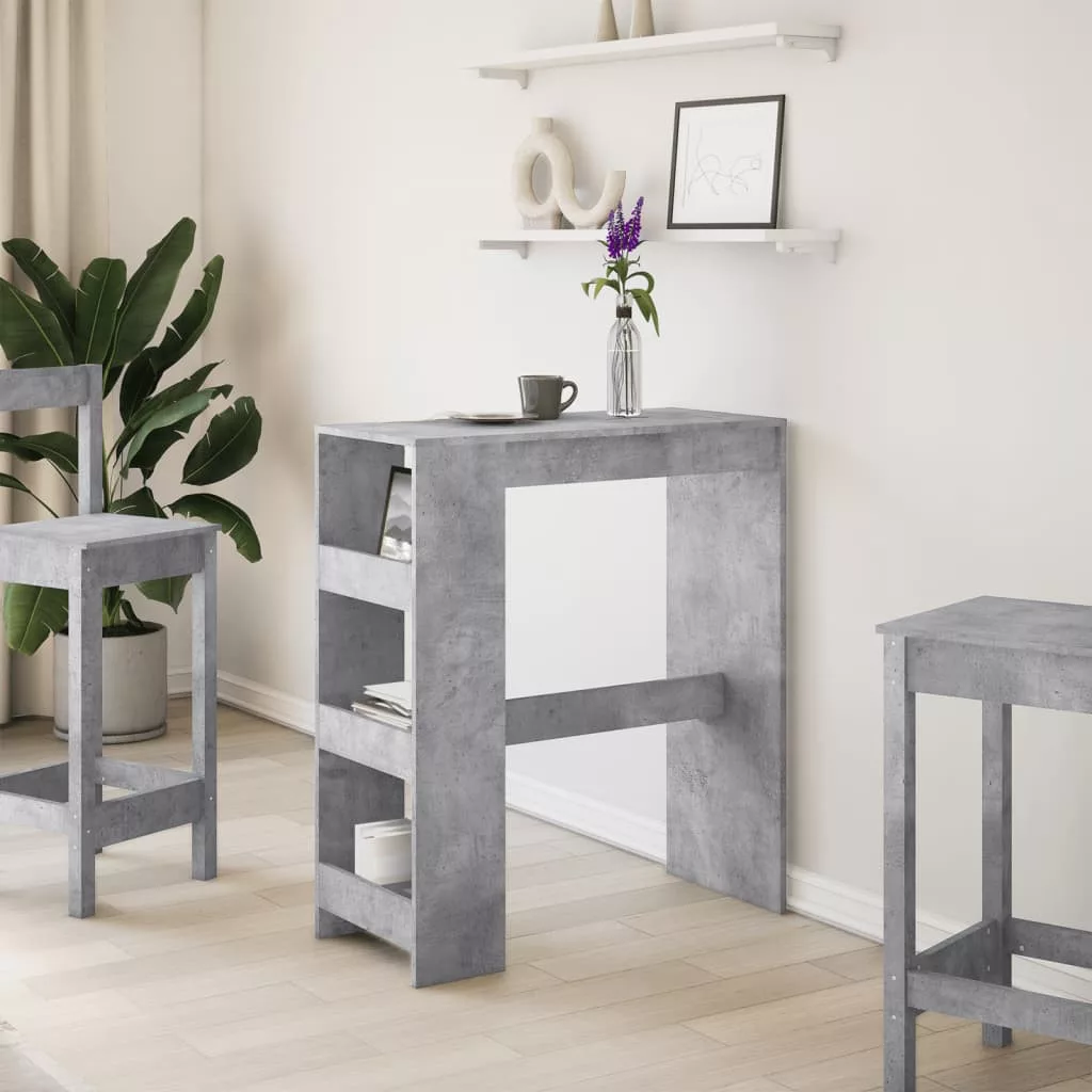 vidaXL betonszürke szerelt fa tárolórekeszes bárasztal 90x40x103,5 cm