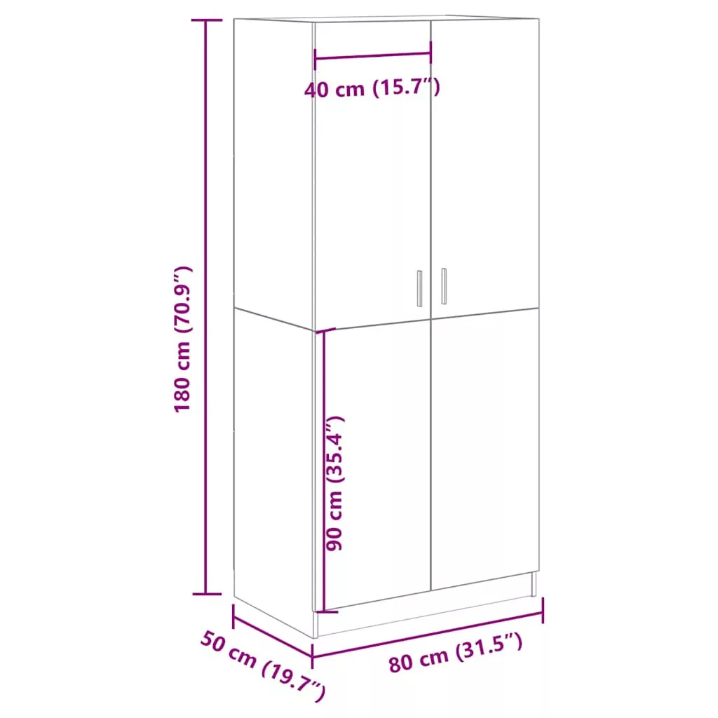 - Mérete: 80 x 52 x 180 cm (Szé x Mé x Ma)