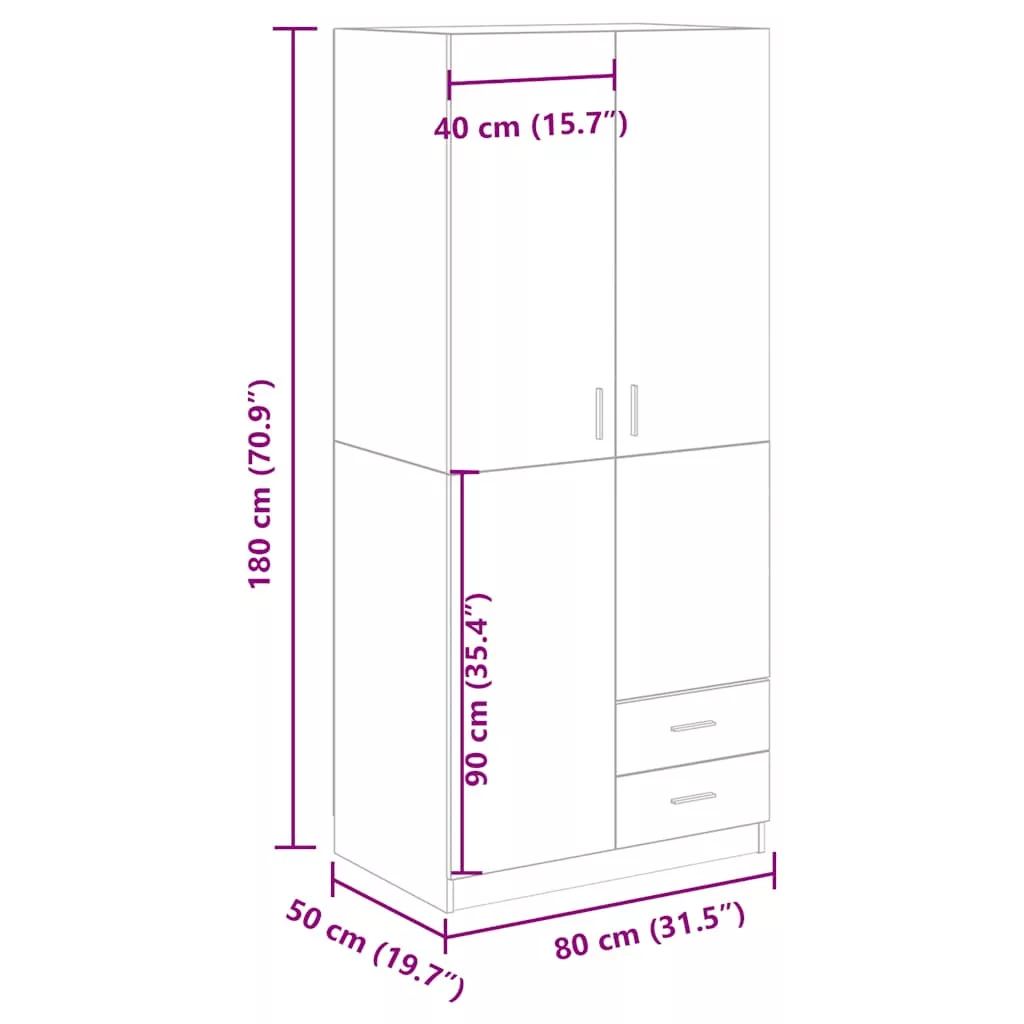 - Mérete: 80 x 52 x 180 cm (Ho x Szé x Ma)