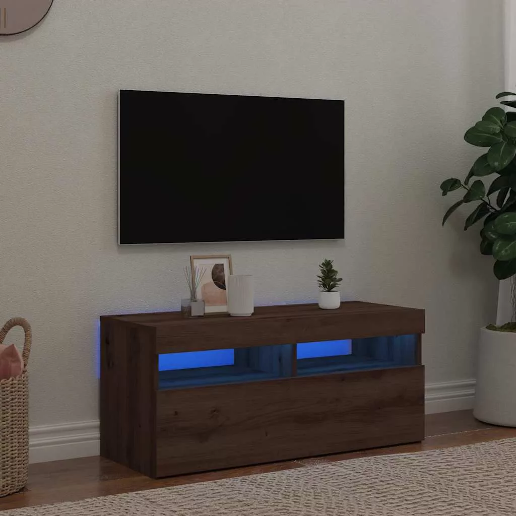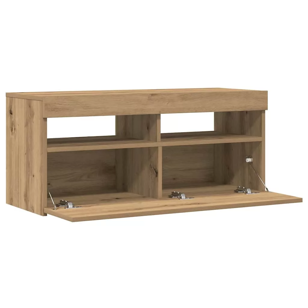 - RGB LED-világítás: Ez a TV-állvány RGB LED-világítással lett ellátva, amely különféle menükkel rendelkezik a fény színének változtatására, vagy beállítható a szín automatikus váltakozása. A LED-világítás kiemeli a szekrény modern kialakítását, és fokozza divatos hangulatát.