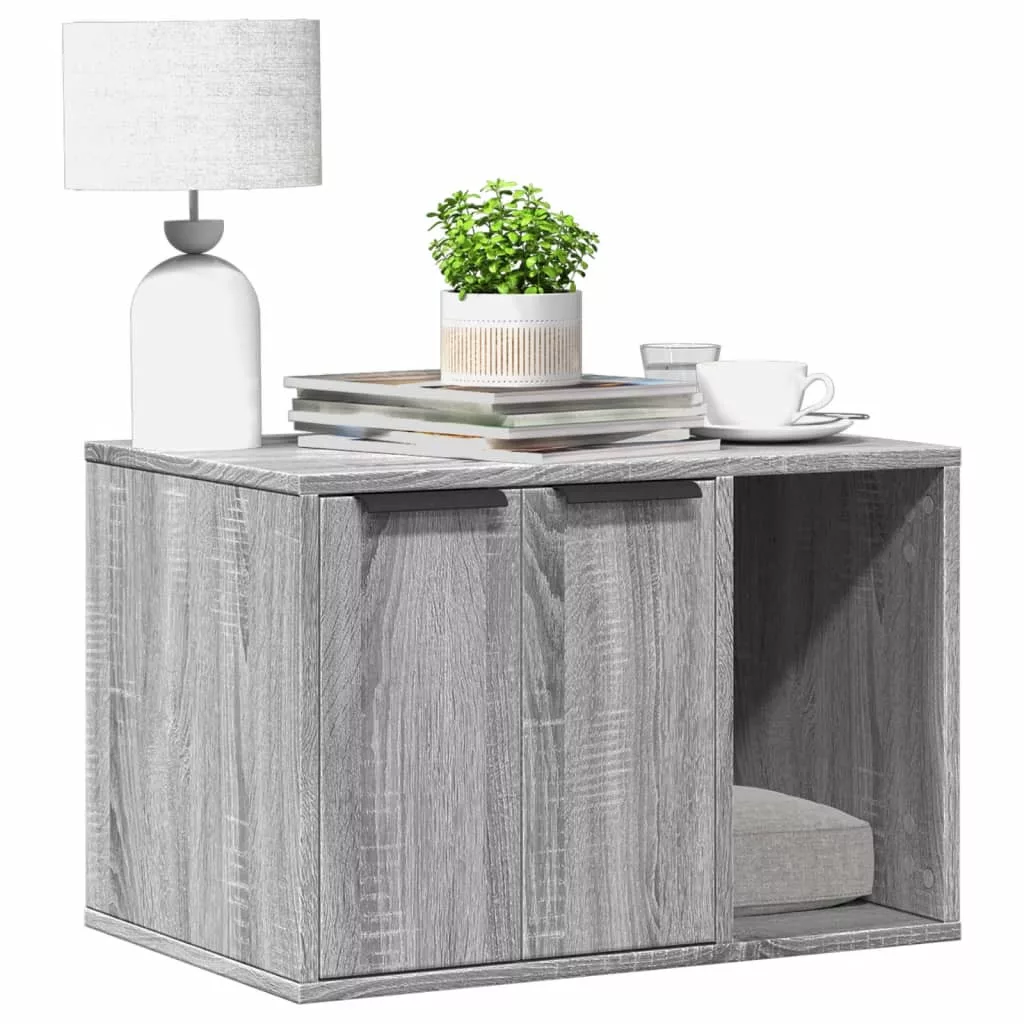 - Sokoldalú felhasználás: Az alomdoboz tárolóbútor nemcsak hangulatos macskaházként, hanem kisasztalként vagy praktikus tárolószekrényként is funkcionál, míg a teteje ideális helyet biztosít képkeretek, növények, és egyéb apró dekorációs tárgyak megjelenítéséhez.