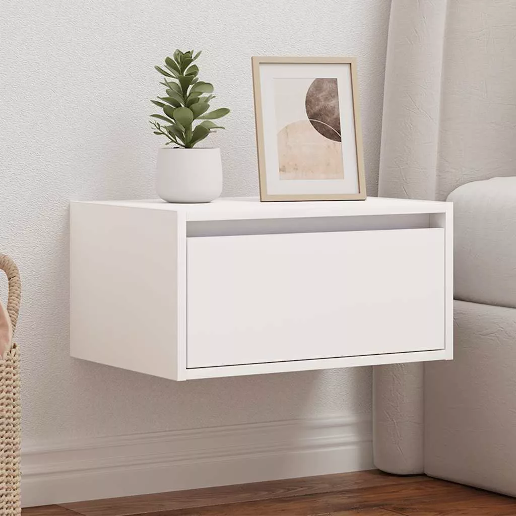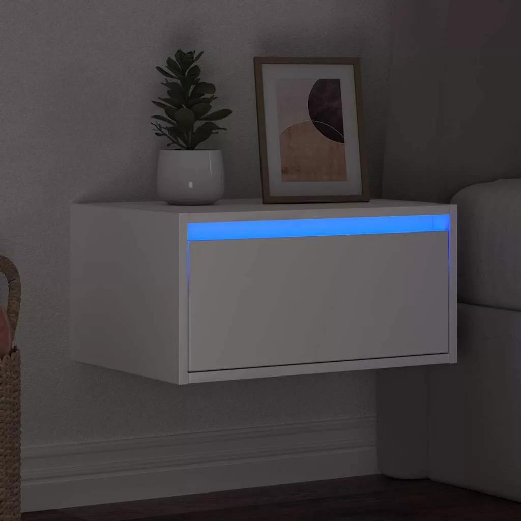 Díszítse hálószobáját ezzel a LED-es lámpával felszerelt, falra szerelhető éjjeliszekrénnyel! Könnyedén beleolvad bármilyen stílusú berendezésbe!