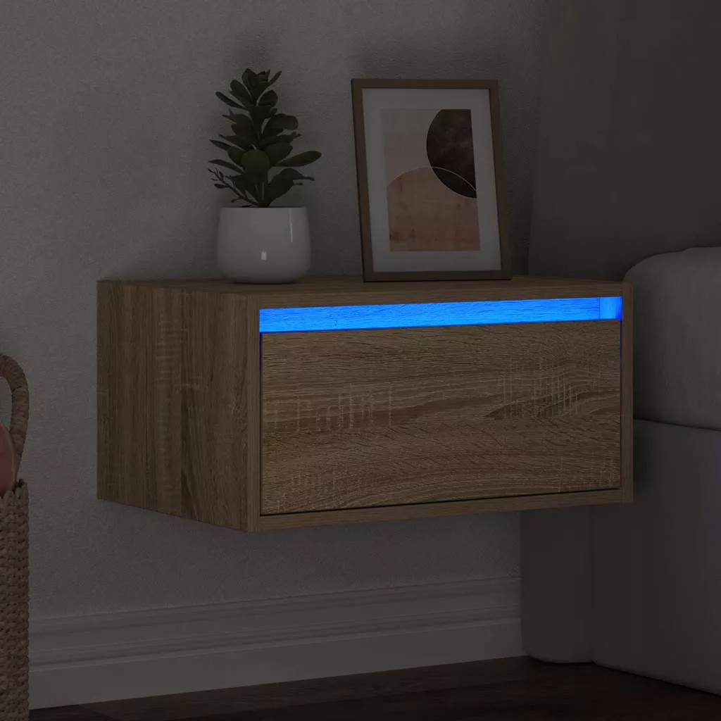 Díszítse hálószobáját ezzel a LED-es lámpával felszerelt, falra szerelhető éjjeliszekrénnyel! Könnyedén beleolvad bármilyen stílusú berendezésbe!