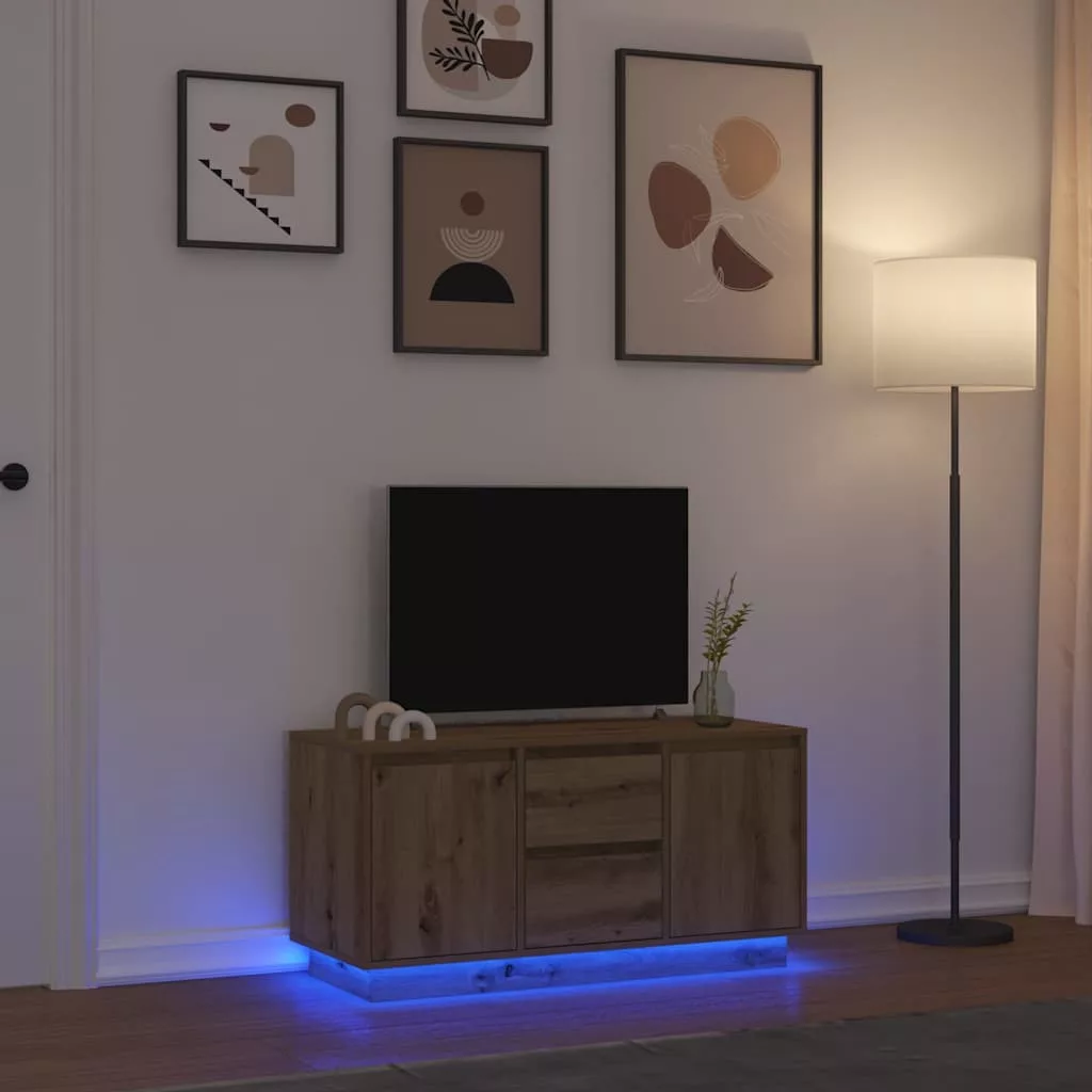 Ez a stílusos, mégis praktikus kialakítású, LED-lámpákkal ellátott TV-szekrény minden bizonnyal szobája középpontja lesz.