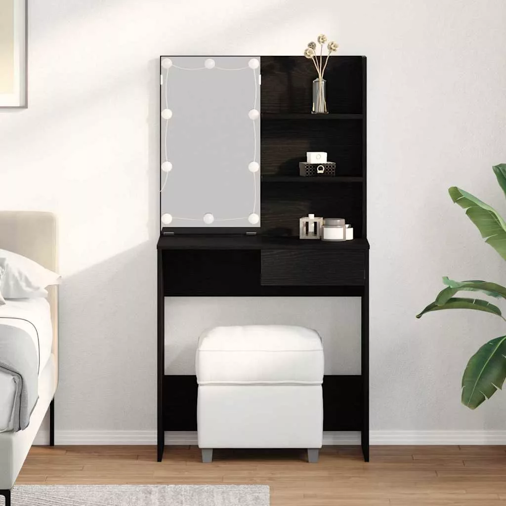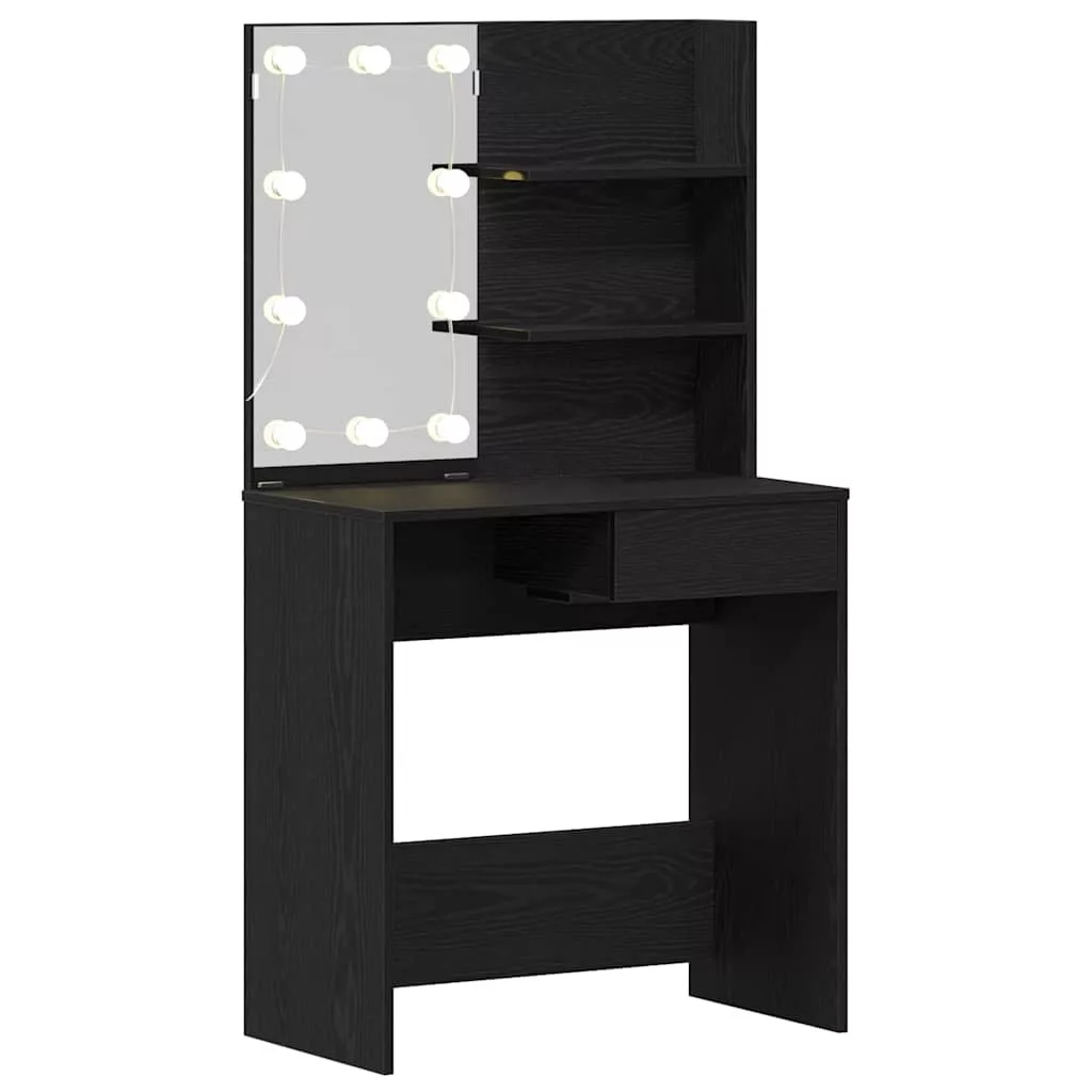 Ez a modern sminkasztal és tároló megoldás elegáns dizájnt és praktikus funkciókat kínál, amik bármilyen hálószobához passzolnak. Kortalan stílusa feldob minden helyiséget, miközben sok tárolóhelyet biztosít sík tükrökkel és LED világítással, így ideális a személyre szabott groomoláshoz és a rendrakáshoz. A kompakt asztal beépített fából készült, stabil lábakkal és polcokkal, így ötvözi az egyszerűséget és a funkcionalitást, eleganciát hozva a helyigényes rendhez.