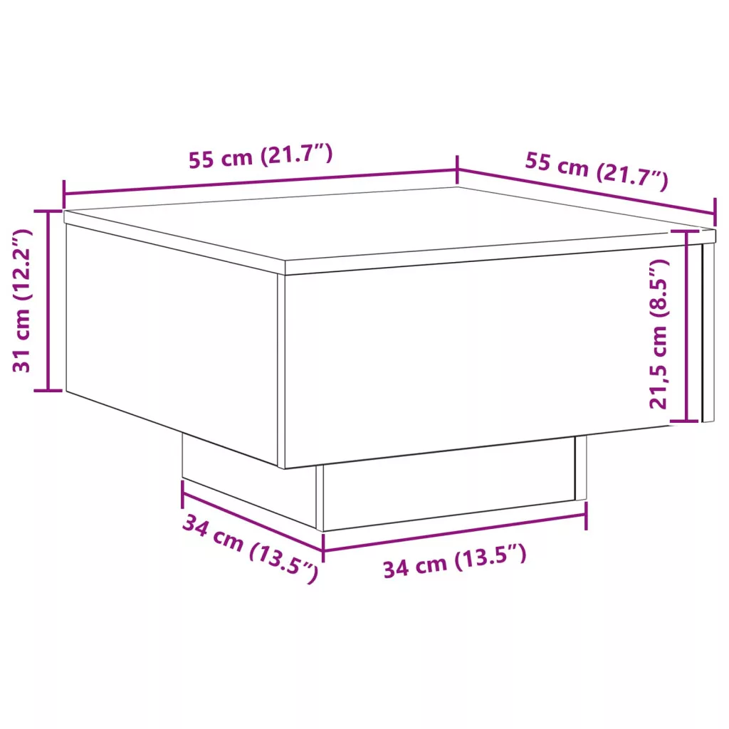 Ez a Kortárs Dohányzóasztal LED Fényekkel a modern stílust és a funkcionális eleganciát hozza egybe, a nappalid középpontjaként működve. Az elegáns szerelt fa felülete jól illik bármilyen dekorációhoz, és a beépített LED világítással egy kis plusz hangulatot ad a térnek.