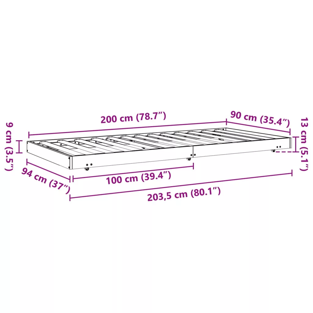 - Általános dimenziók: 94 x 203,5 x 13 cm (Ho x Szé x Ma)