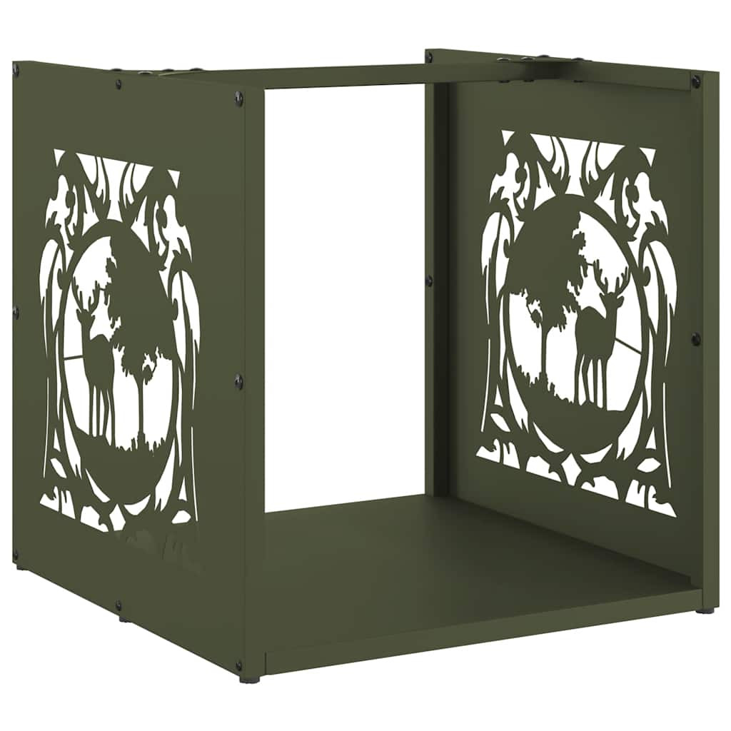 vidaXL olívazöld hidegen hengerelt acél tűzifatároló 40x40x40 cm