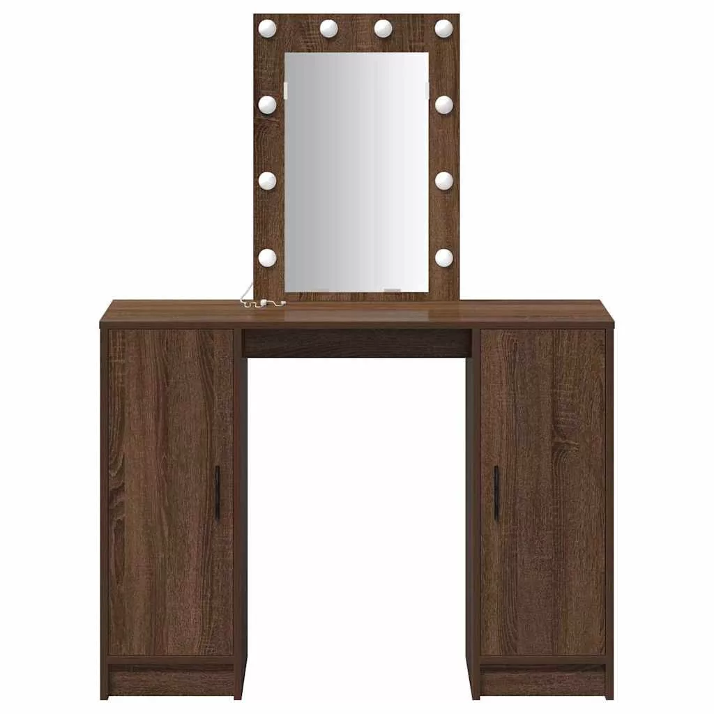 vidaXL Öltözködőasztal tükör lámpákkal Barna 102 x 33 x 135 cm Faanyag