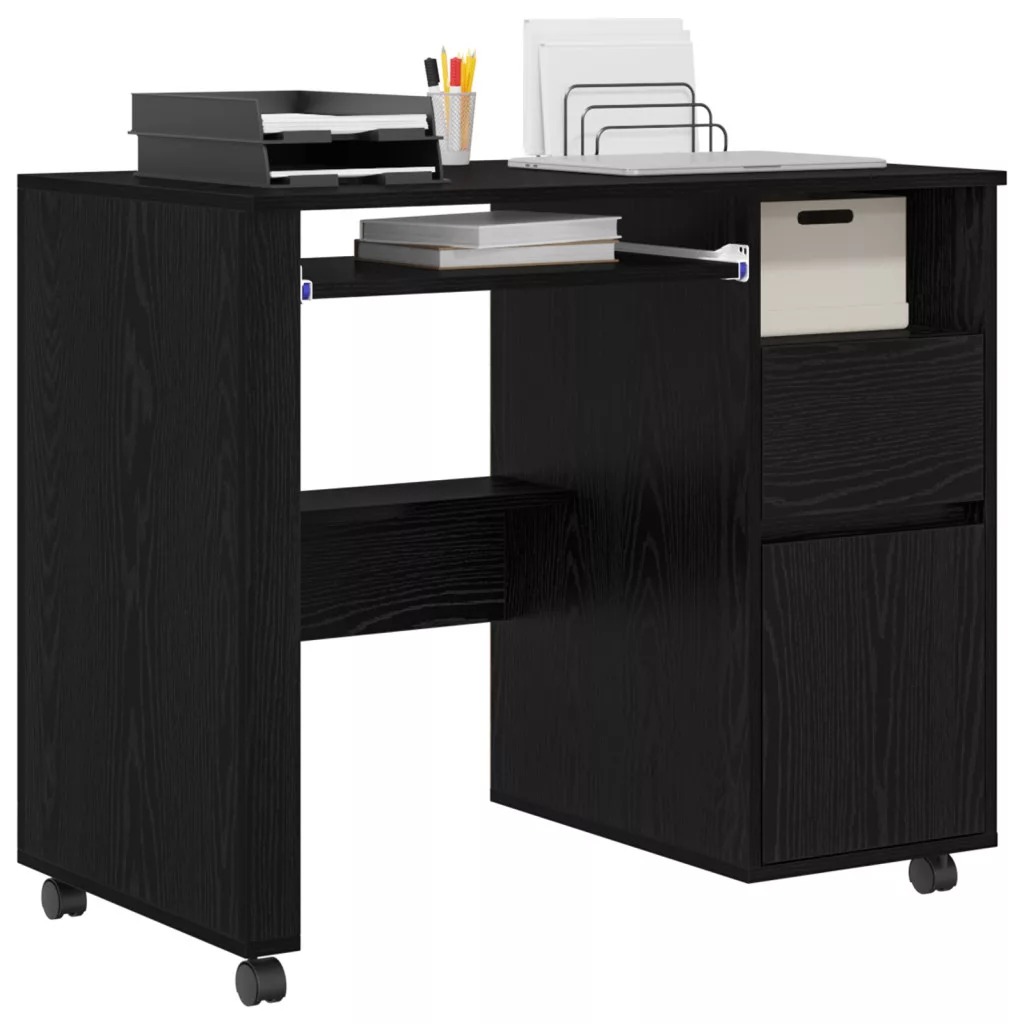Ez a 'modern számítógépes asztal kerekeken'bármely modern otthoni iroda remek kiegészítője. A letisztult, modern dizájnja követi a trendeket, így stílusos és funkcionális munkateret kínál. Téglalap formája és texturált megjelenése könnyen passzol különböző szobastílusokhoz, mindkét hasznosságát és szépségét nyújtva. Az asztal számítógép használatra készült, és van benne hely a fontos munkakellékek rendszerezésére is.