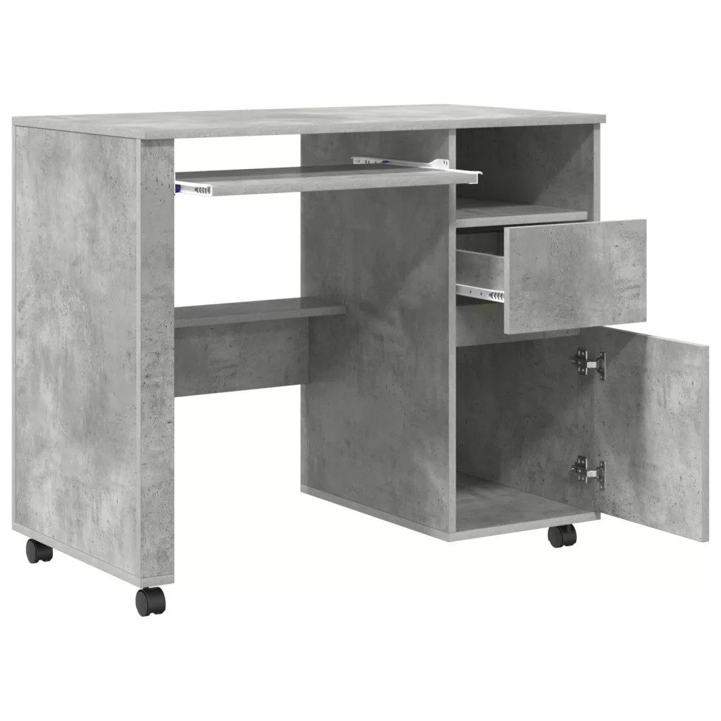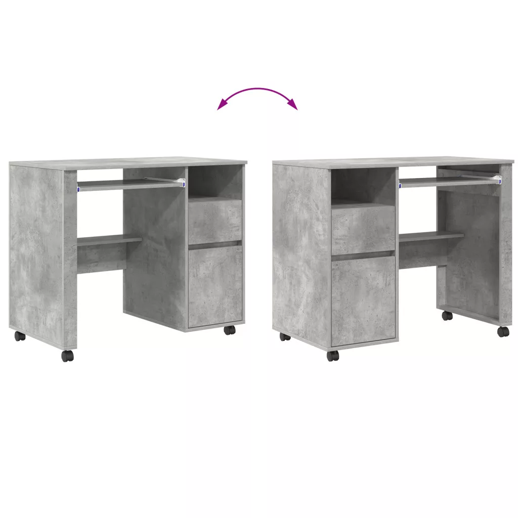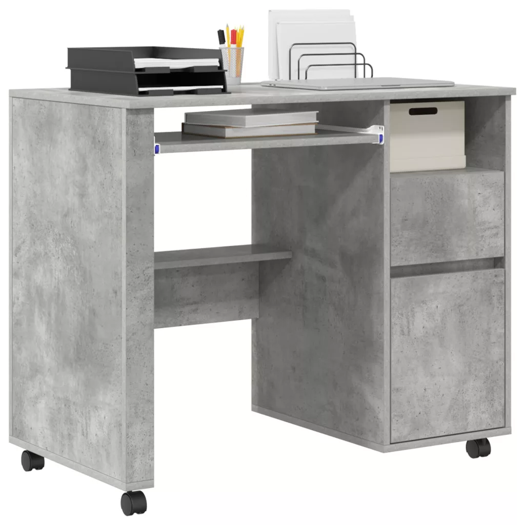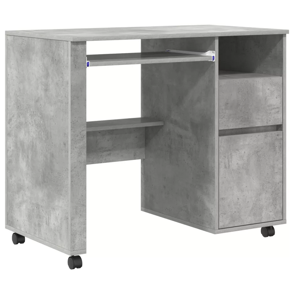 Ez a 'modern számítógépes asztal kerekeken'bármely modern otthoni iroda remek kiegészítője. A letisztult, modern dizájnja követi a trendeket, így stílusos és funkcionális munkateret kínál. Téglalap formája és texturált megjelenése könnyen passzol különböző szobastílusokhoz, mindkét hasznosságát és szépségét nyújtva. Az asztal számítógép használatra készült, és van benne hely a fontos munkakellékek rendszerezésére is.