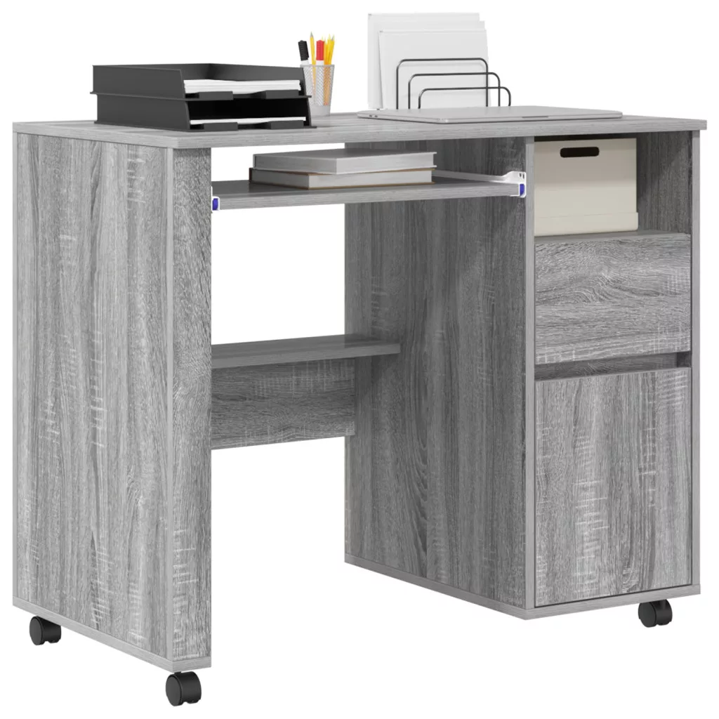 Ez a 'modern számítógépes asztal kerekeken'bármely modern otthoni iroda remek kiegészítője. A letisztult, modern dizájnja követi a trendeket, így stílusos és funkcionális munkateret kínál. Téglalap formája és texturált megjelenése könnyen passzol különböző szobastílusokhoz, mindkét hasznosságát és szépségét nyújtva. Az asztal számítógép használatra készült, és van benne hely a fontos munkakellékek rendszerezésére is.