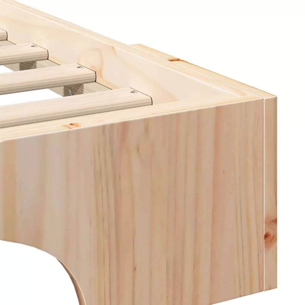 - Tömör fenyő anyag: Az ágykeret tartós tömör fenyőből készült, ami hosszú élettartamot biztosít. Ez a természetes anyag híres sima textúrájáról és vonzó megjelenéséről, így kedvelt a minőséget keresők között a hálószobabútorok piacán. Hosszú évekig hű társ lesz az otthonodban.