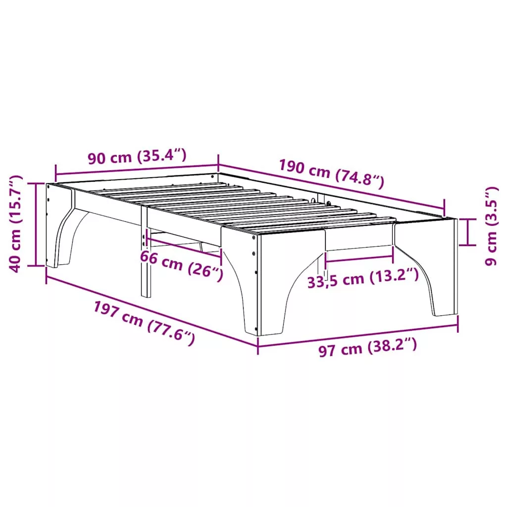 - Tömör fenyő anyag: Az ágykeret tartós tömör fenyőből készült, ami hosszú élettartamot biztosít. Ez a természetes anyag híres sima textúrájáról és vonzó megjelenéséről, így kedvelt a minőséget keresők között a hálószobabútorok piacán. Hosszú évekig hű társ lesz az otthonodban.