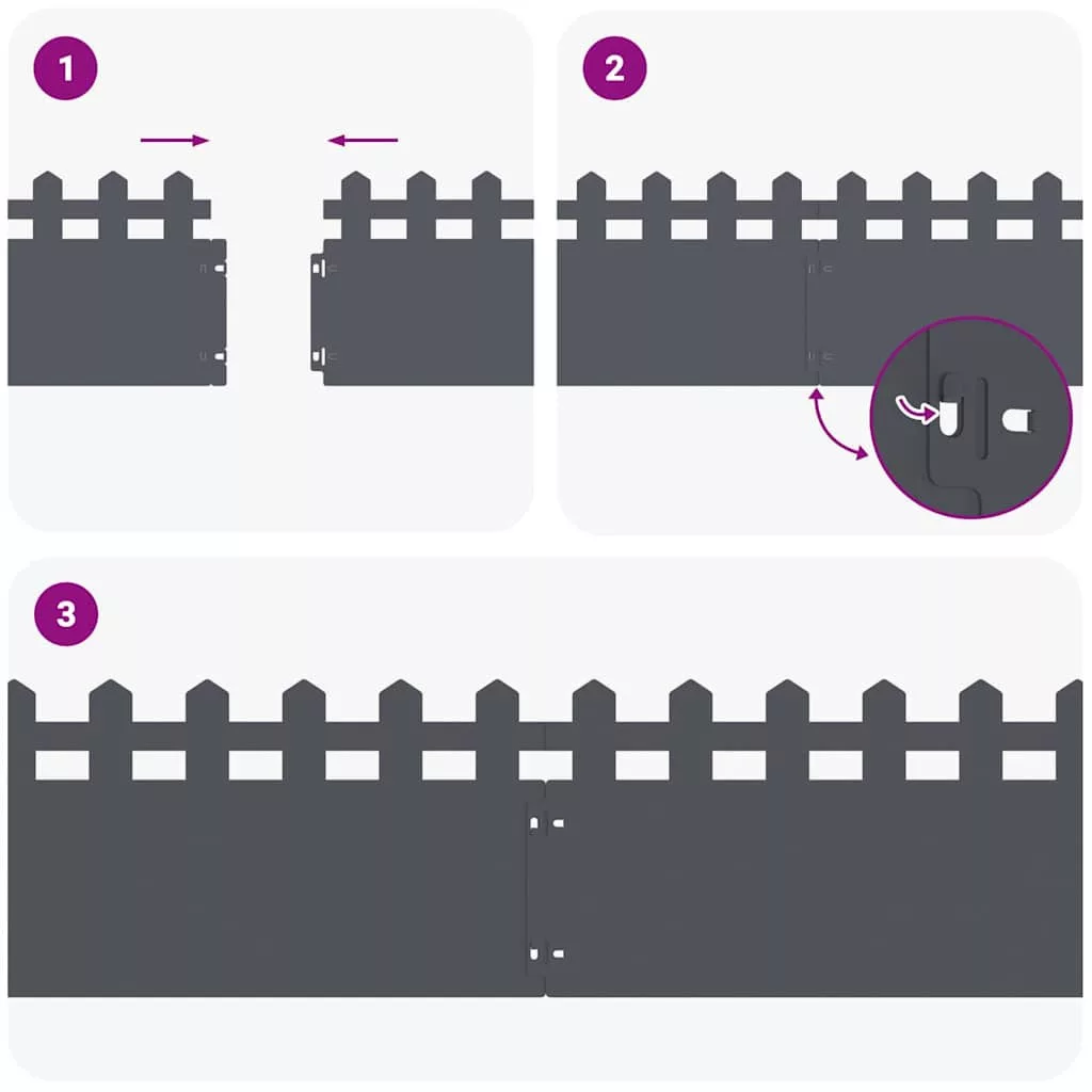- Tartós anyag: Robusztus fémből készült, ezek a gyepelválasztók a kültéri használat rigórusainak ellenállására lettek gyártva. A fém konstrukció hosszan tartó biztosít, hogy a kert határvonalai stabilak maradjanak. Ellenállnak az időjárás változásainak, ígérve a hosszú élettartamot nyáron és ősszel is.