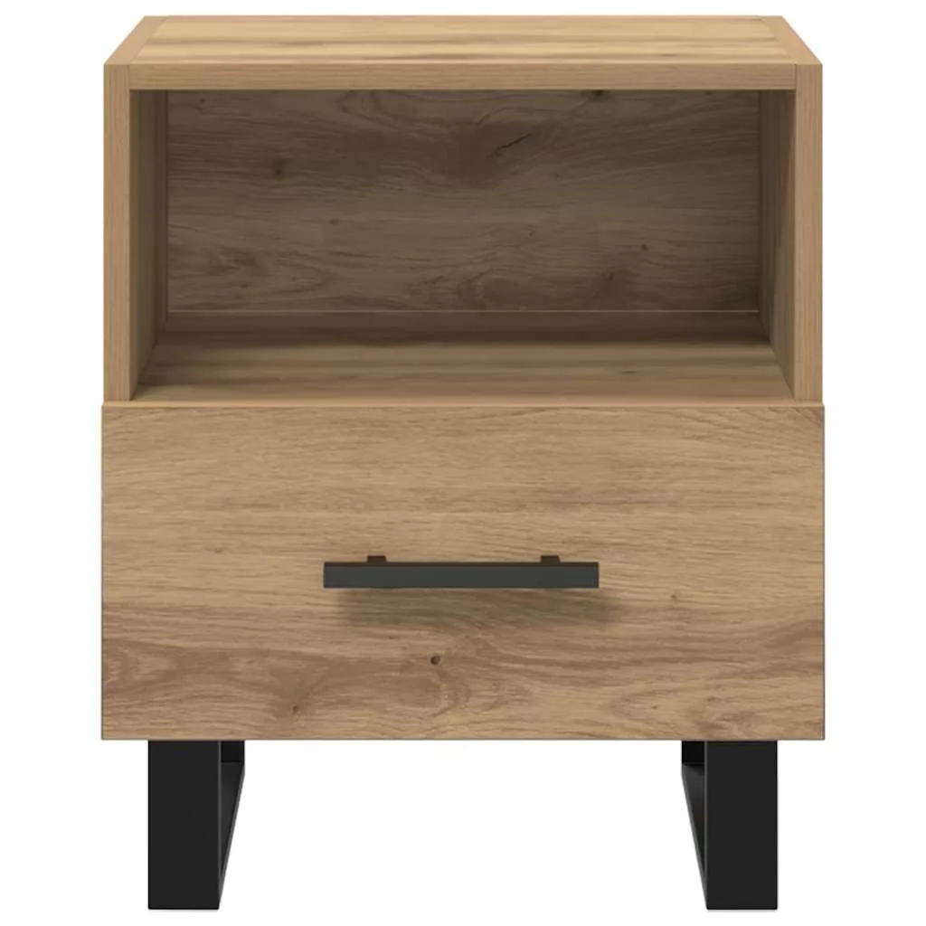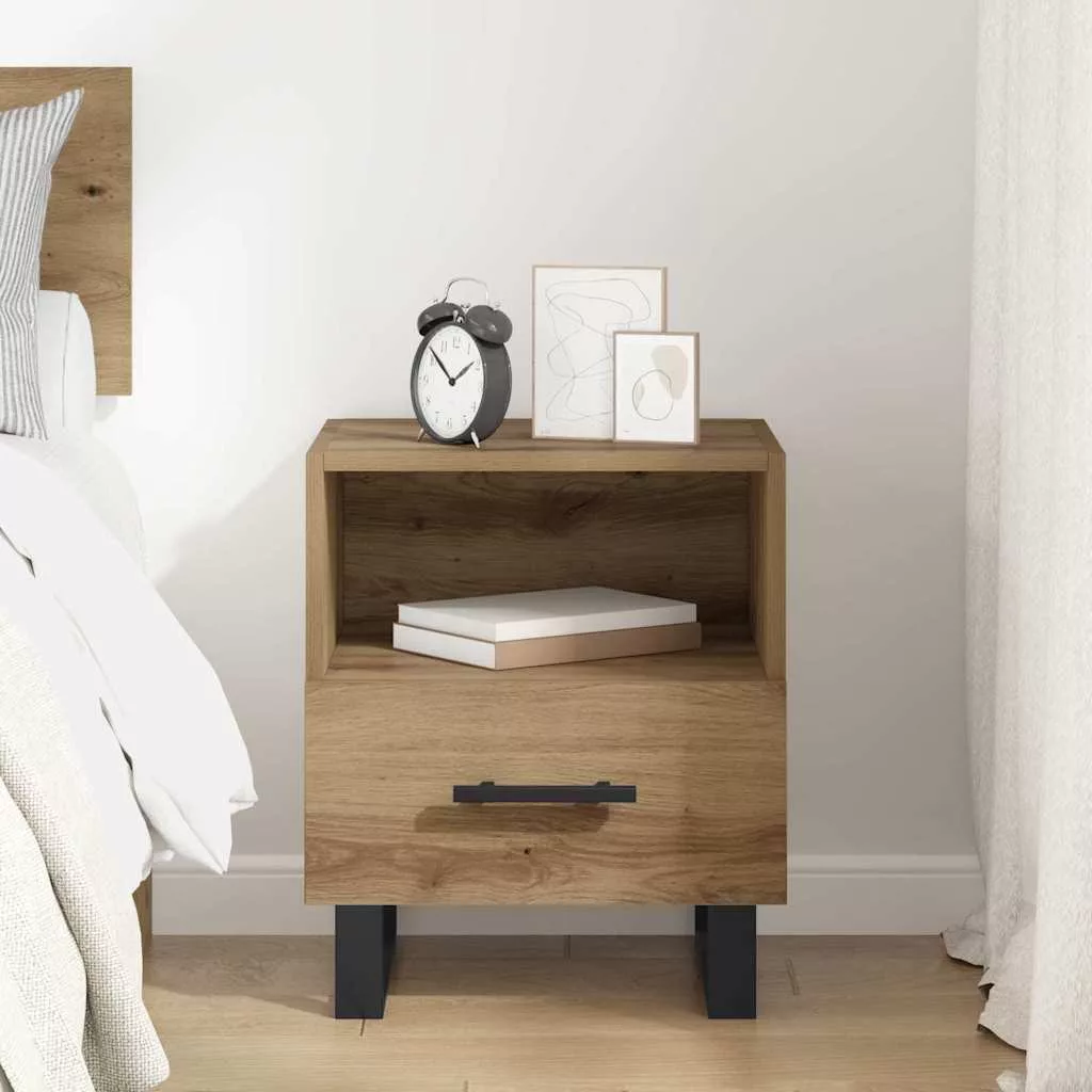 - Prémium anyag: Gondosan szerelt fából készült, a modern éjjeli szekrény a tartósság és az esztétikai vonzalom bámulatos elegyét kínálja. Ezt az anyagot nemcsak az ereje miatt választották, hanem mert sikeresen utánozza a természetes faerezetet is, ami fokozza a báját, miközben könnyen karbantartható. A szerelt fa és fém kombinációja stabilitást biztosít, stílusos kiegészítő a térhez.