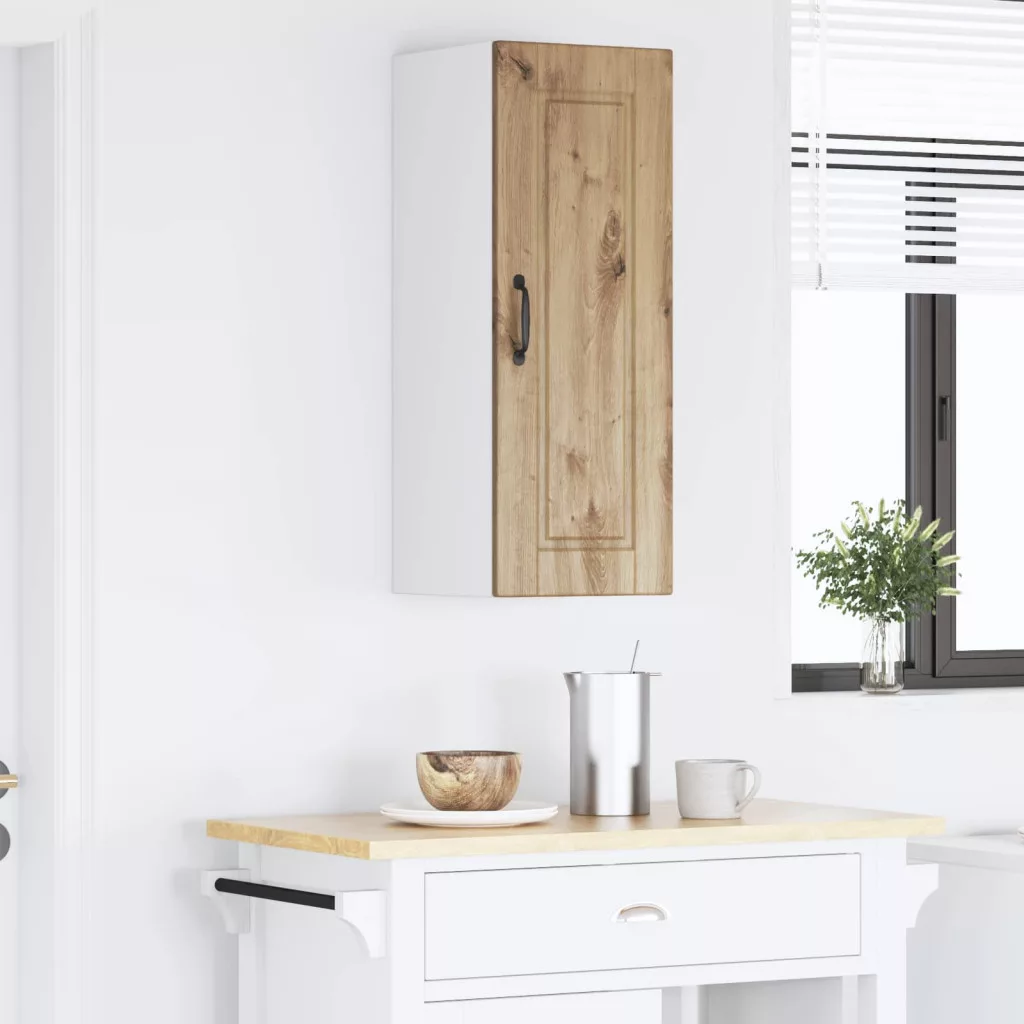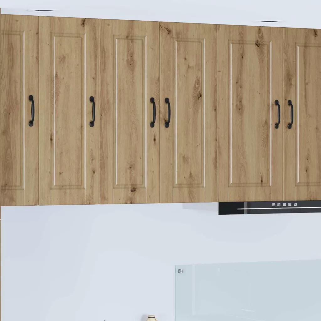 Ez a konyhai szekrény egy modern, fából készült bútor, amely letisztult és kortárs dizájnt képvisel. Mérnöki fából készült, így tartós és praktikus a beltéri használatban. Eleganciát ad a konyhádnak a tiszta vonalaival és minimalista díszítésével. Bőséges tárolóhelyet biztosít polcain, tökéletesen illeszkedik a modern dizájnhoz, és emeli a főzési tér hangulatát.
